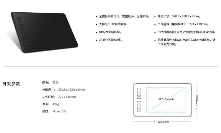 Huion online course tablet H950P computer drawing tablet portable drawing tablet handwriting tablet H950P black 32x18cm