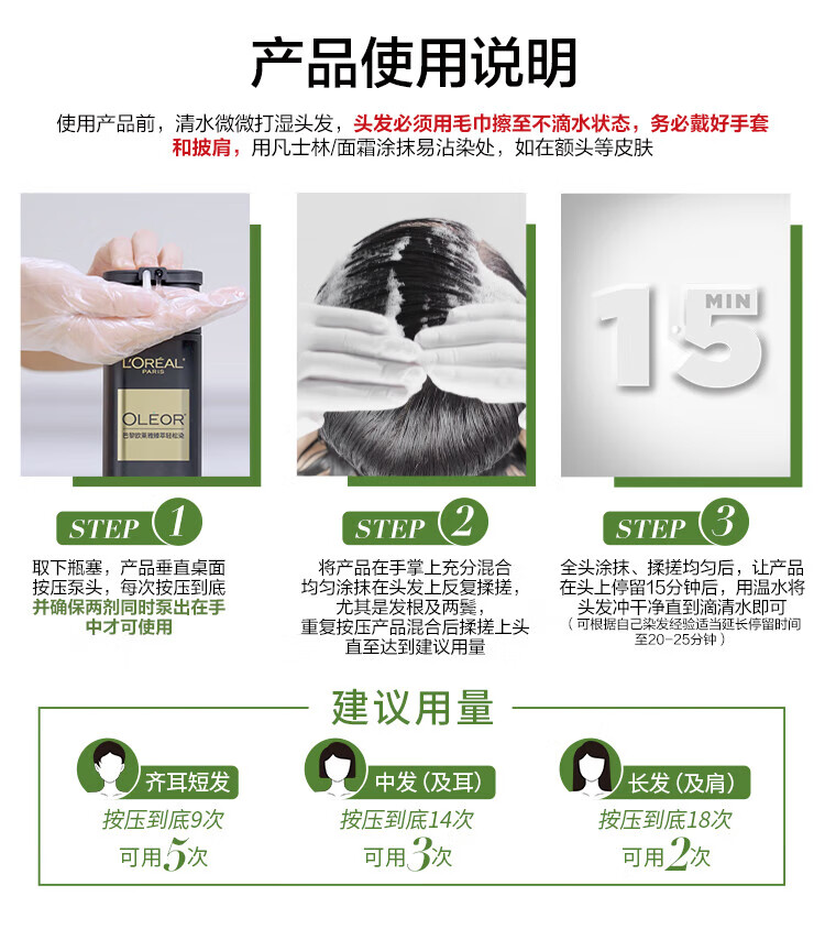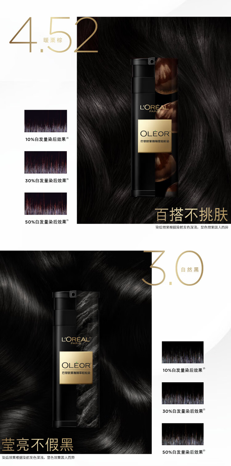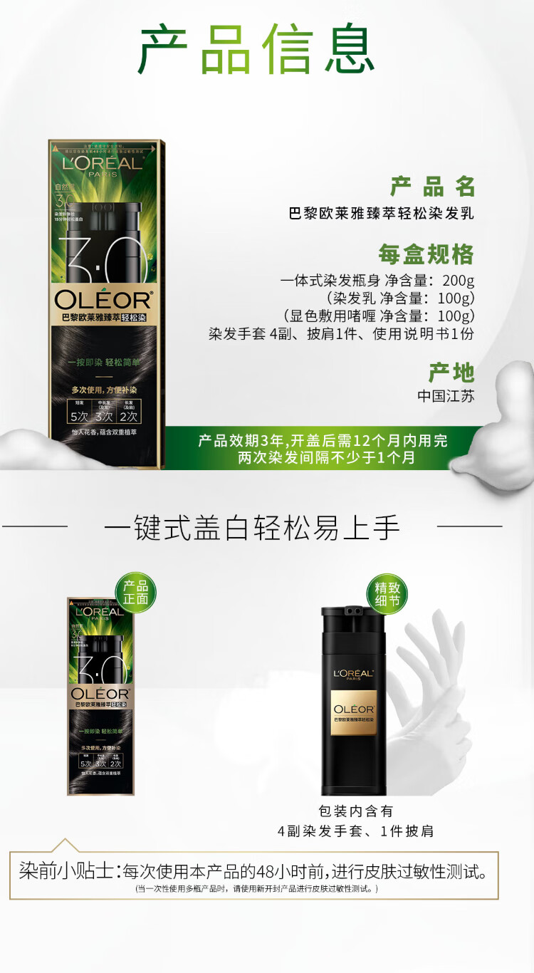 L'Oreal Easy Hair Dye Cream for Men and Women Covering Gray Hair and Turning Black Hair Dye 3.0 Natural Black 200g Popular Products
