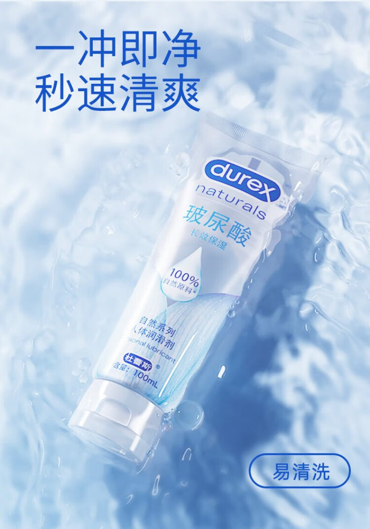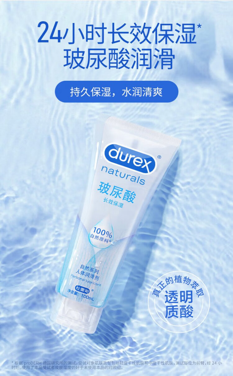杜蕾斯(durex)玻尿酸人体润滑液100ml 透明质酸润滑油剂水溶性 夫妻房事情趣