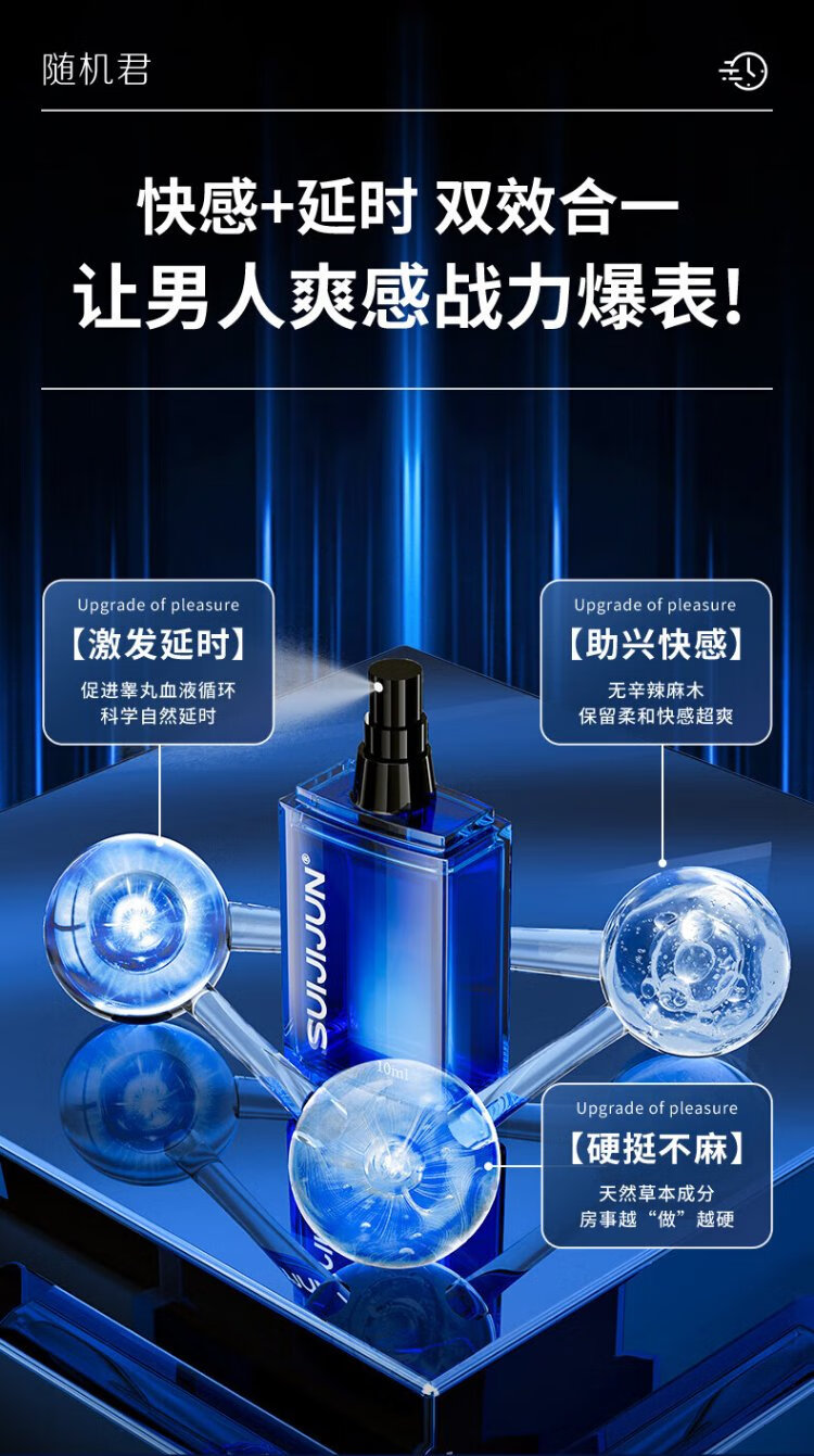 Random Jun Delay Spray Men's Spray Delay Time Male Long-lasting Non-Ejaculation Small Blue Bottle Semen Locking Ring Men's Spray 10ml Long-lasting Delay Can be used with Premature Ejaculation Delay Long-lasting Medicine Sex Toys Delay Wipes Can be used with Adult Sex Products Delay Cream Couple Bed Love Aid Tool Men's Indian God Oil