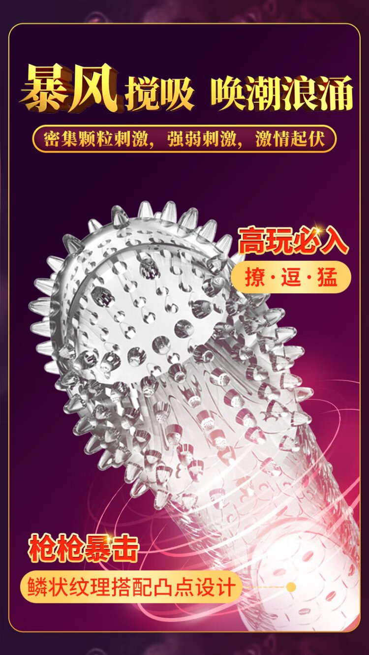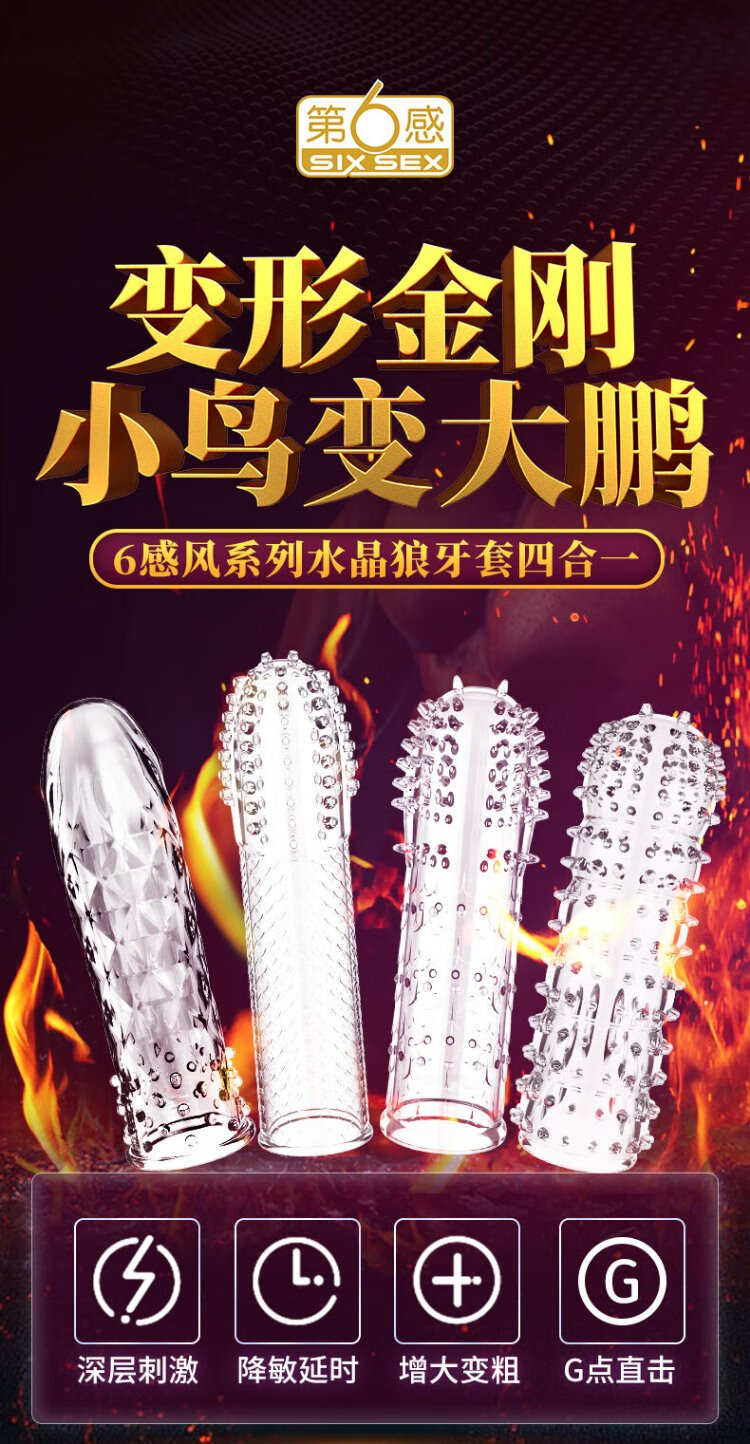 Sixth Sense Wolf Teeth Contraceptive Condoms Four-Pack Physical Delay Extended Thick Threaded Granule Semen Locking Ring Sex Toys