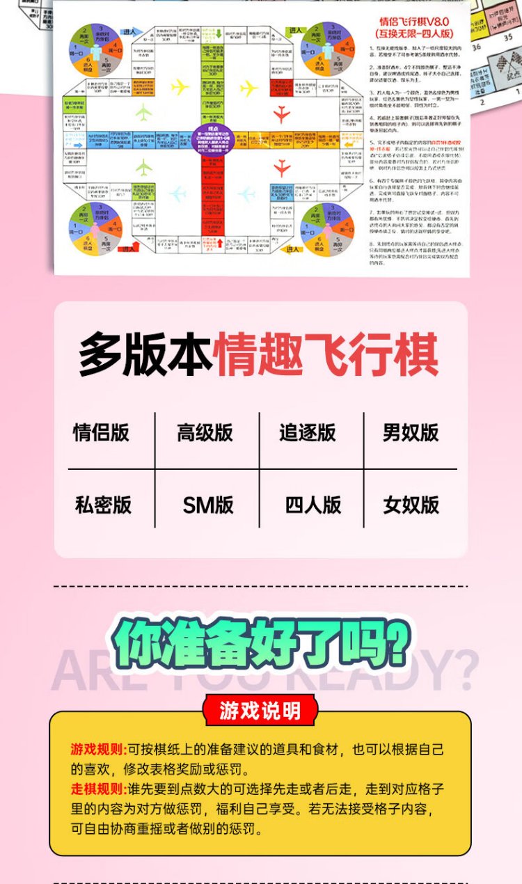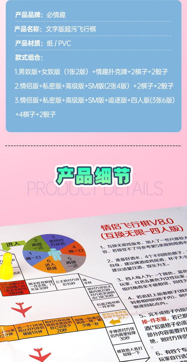 Must Fun SM Sexy Flying Chess Board Game Love Monopoly Dice Game Adventure Couple Interaction Punishment Fun Camping Toy Valentine's Day Creative Gift 4-in-1
