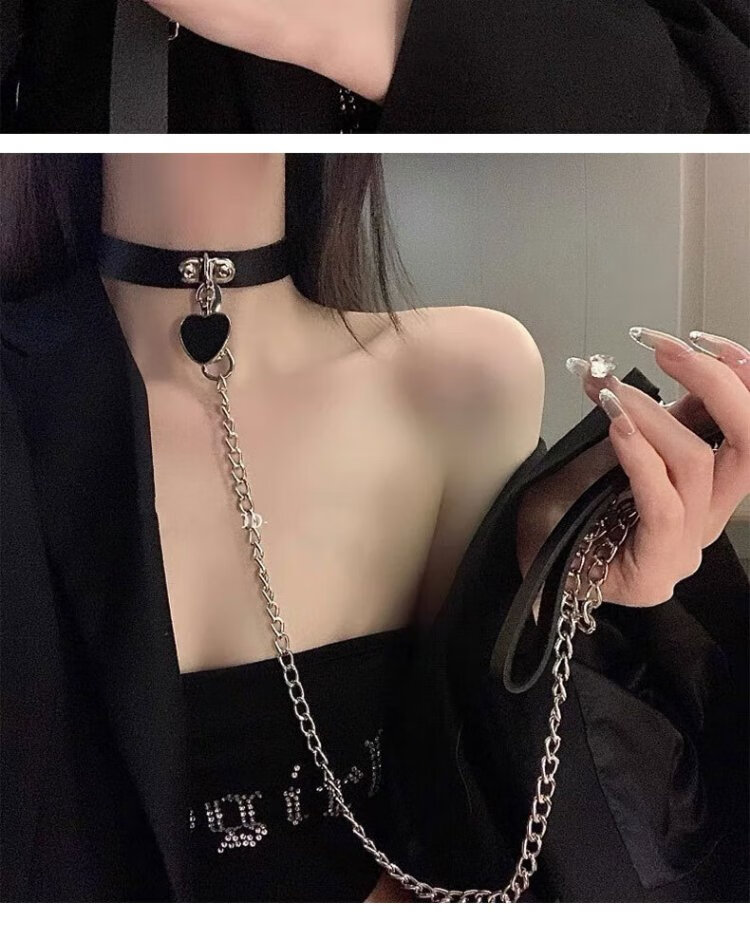 Camellia Peach sm alternative toy dog chain leather collar traction rope binding bondage training fun torture device adult sex toys couple interactive perverted game props M01