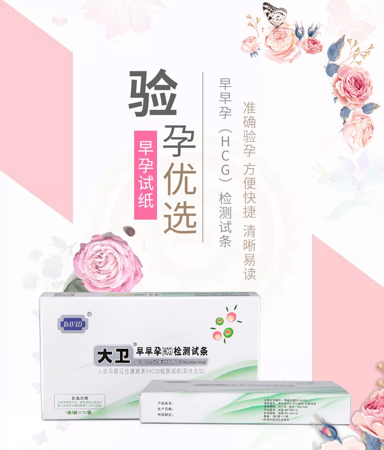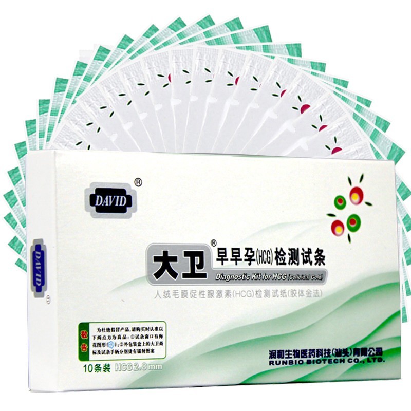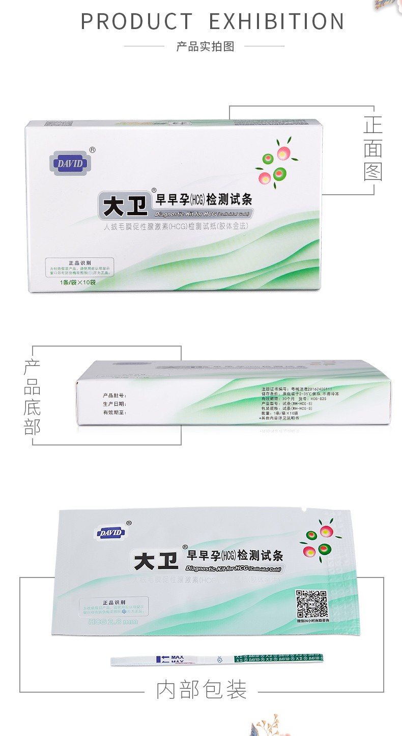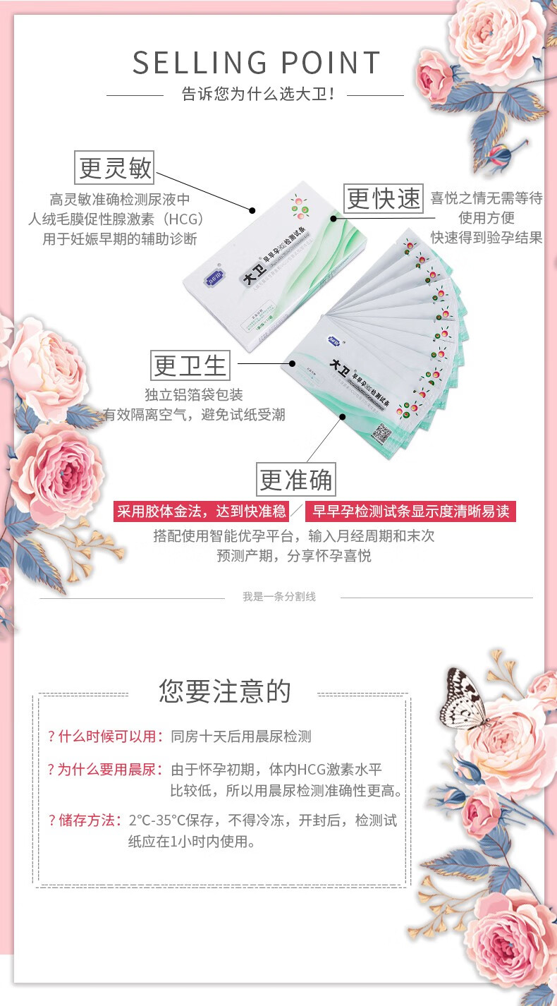 大卫验孕棒早早孕检测试纸10条(不含尿杯)怀孕验孕测孕快速检测  1盒装【不含尿杯