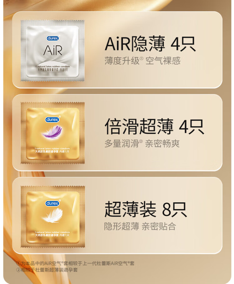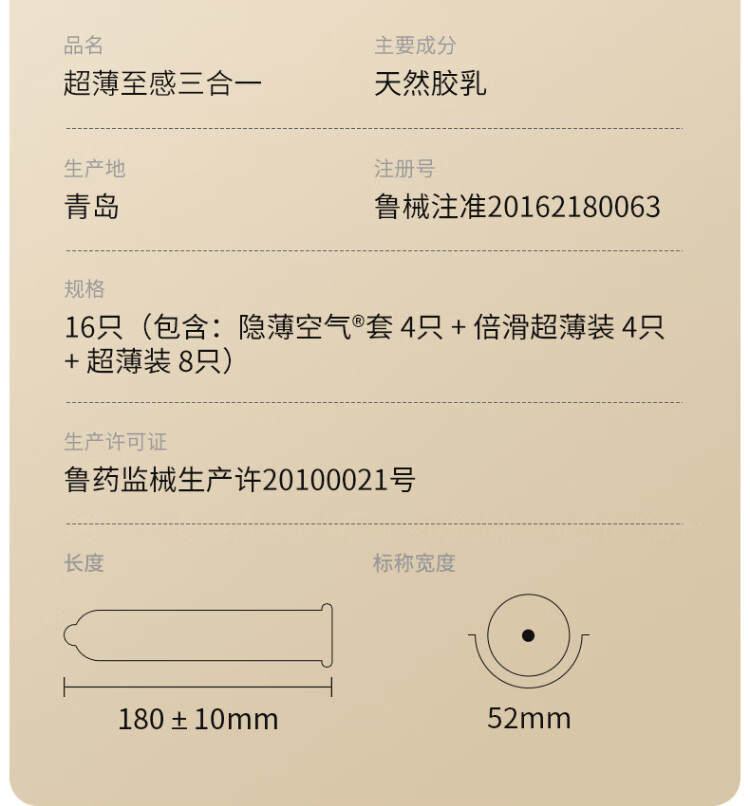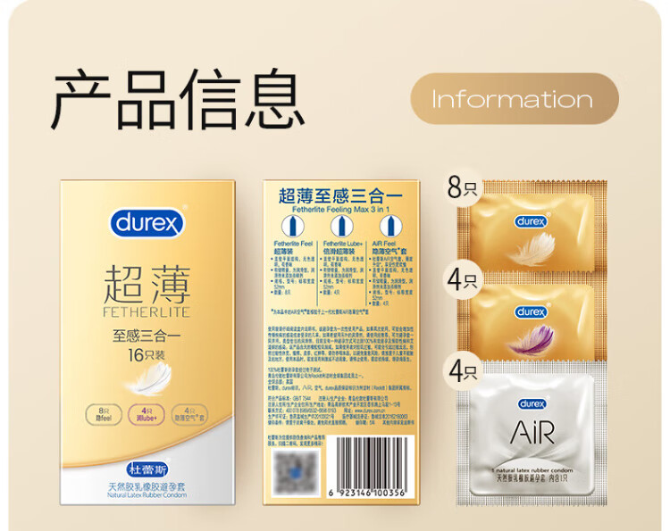 Durex ultra-thin condoms, 16 AIR condoms, adult family planning condoms, nominal width 52mm