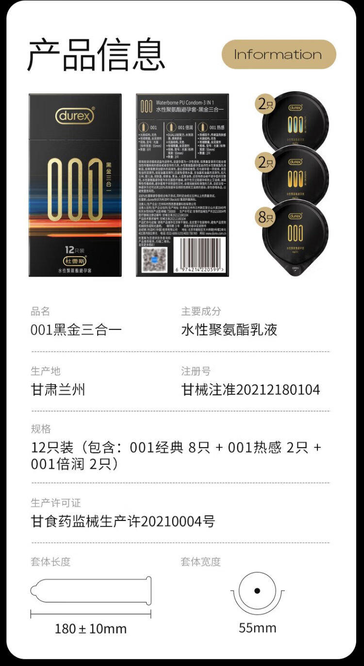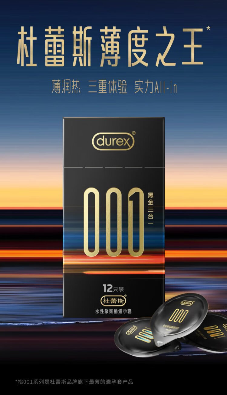 Durex condoms ultra-thin 001 black gold three-in-one 12 condoms adult products sex toys