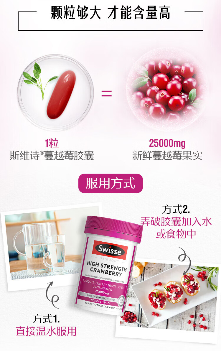 Swisse斯维诗高浓度蔓越莓胶囊A型原花青素VC 私密健康30粒/瓶热巴同款