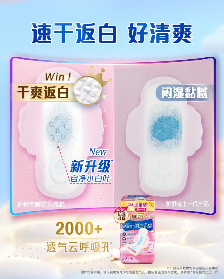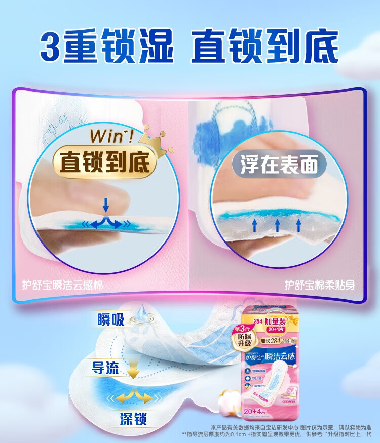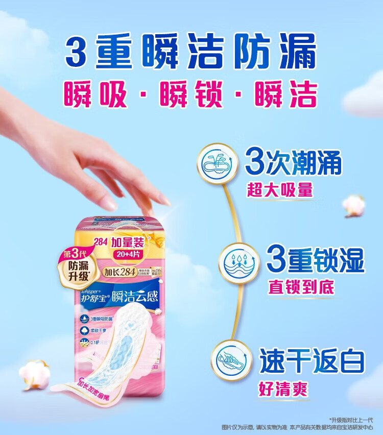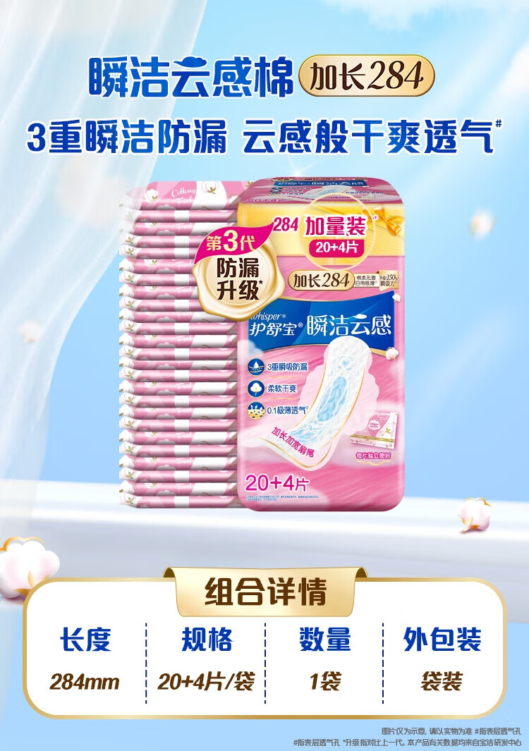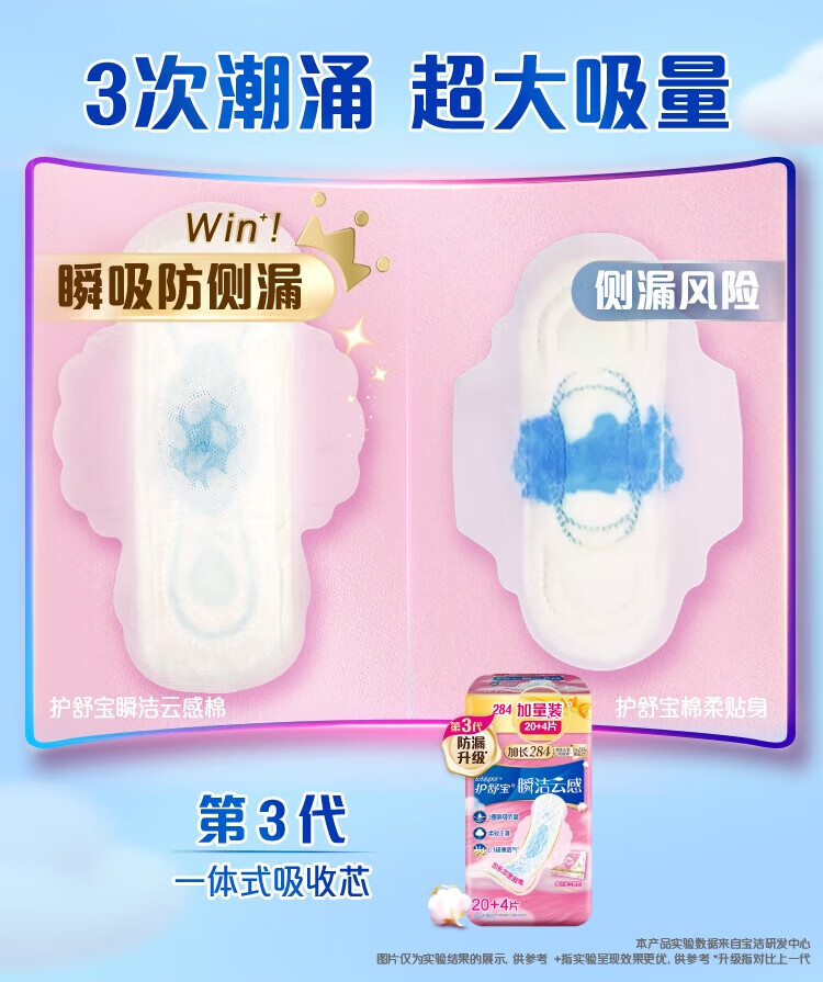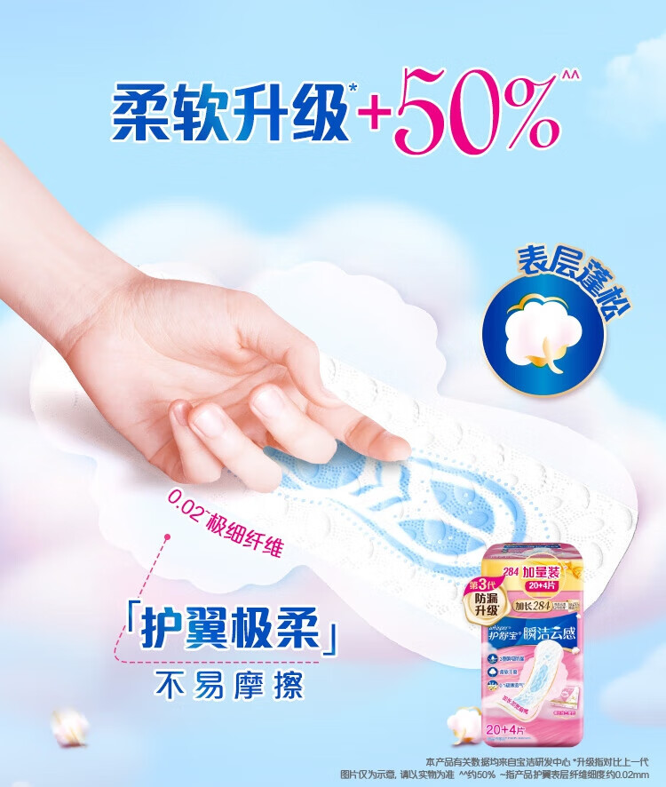 Hushubao innovative instant cleansing cloud-sense cotton sanitary napkin, multi-day use 284mm 24 pieces aunt napkin OCC official flagship