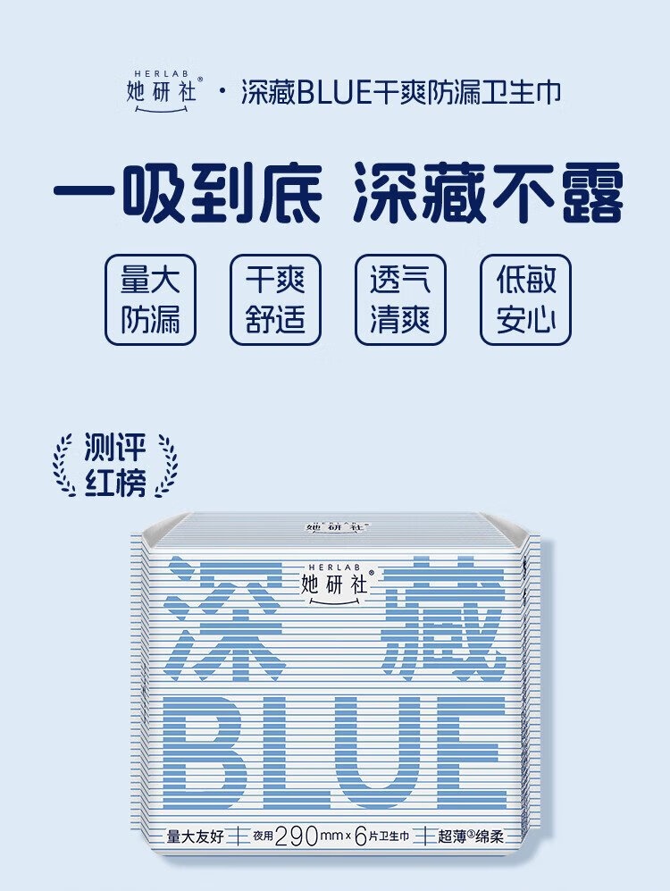 She Research Institute's deep blue sanitary napkin set day/night combination 290mm*30 pieces ultra-thin breathable aunt napkin OCC