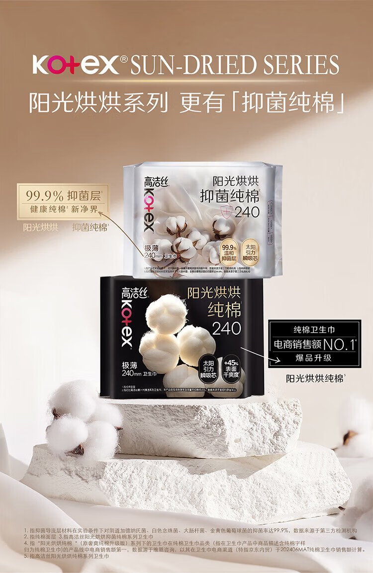 Kotex-Damenbinde Nr. 1 Sunshine aus reiner Baumwolle, 240 mm, 8 Stück * 8er-Pack Serviette für den täglichen Gebrauch, OCC-Flaggschiff