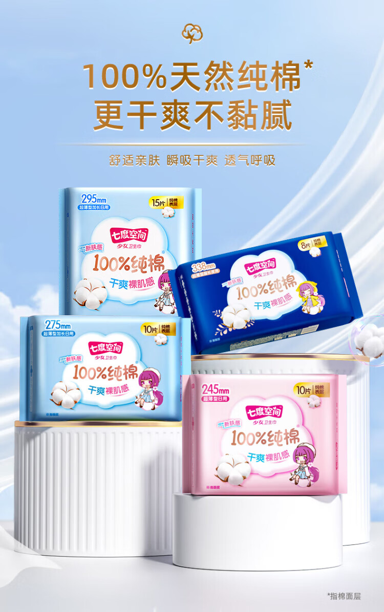 Seven Dimension Girl Ultra-Thin 100% Cotton Daily Sanitary Napkin Set 40 Pieces OCC New National Standard Certification