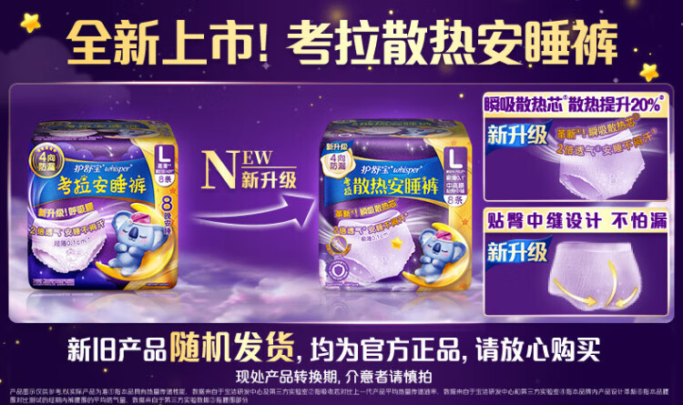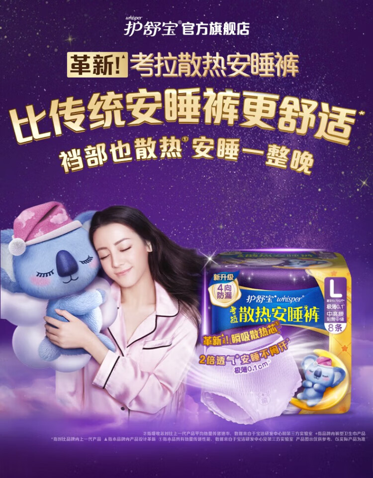 Hushubao Koala cooling sleeping pants 8 pairs L large size pant type sanitary napkin sleeping pants aunt napkin night sleeping pants self-operated sealing