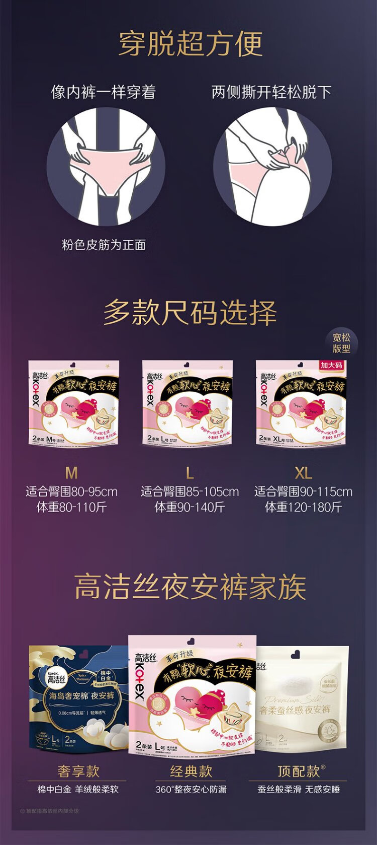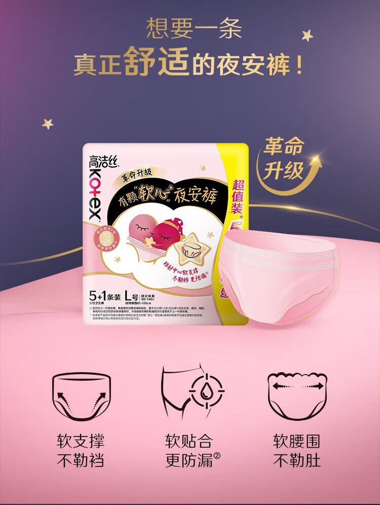 Kotex Effective Bacteria Isolation Soft Heart Night Sleep Pants L Size 12 Pants 90-140 Jin Jin equal to 0.5 kg Pants Type Sanitary Napkin Sleep Pants Self-operated