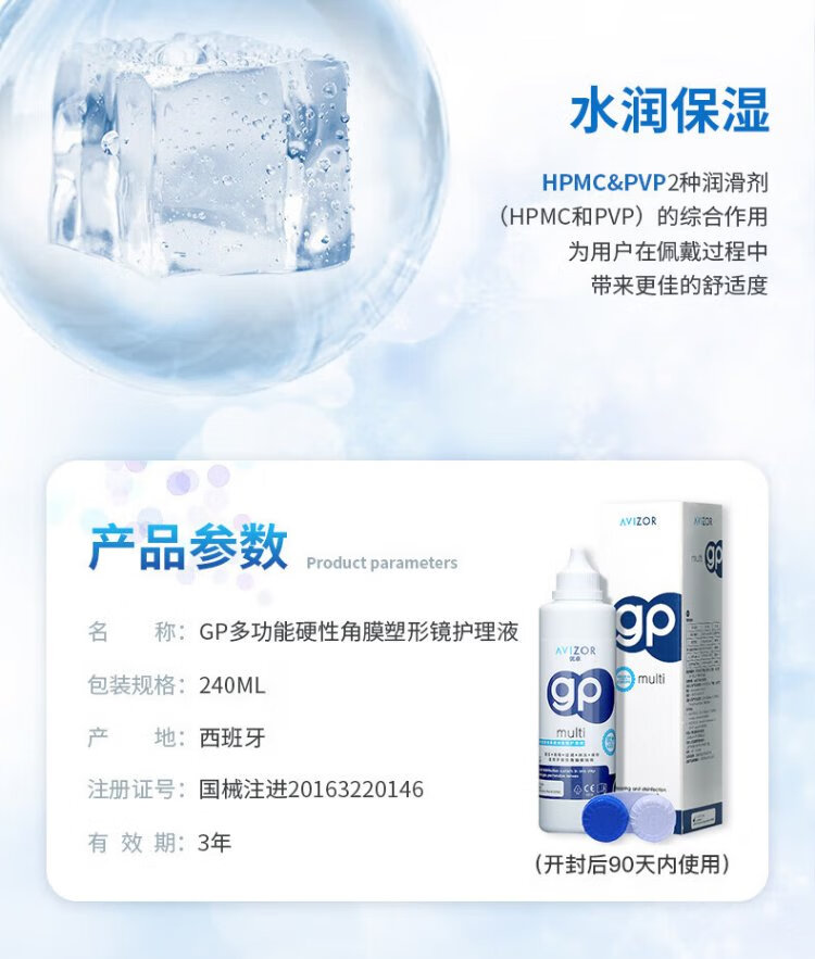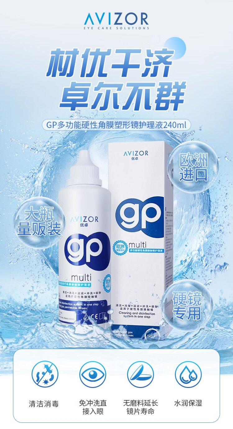 AVIZOR GP Care Solution Rigid Orthokeratology Lens Multifunctional Contact Lens OK Lens Contact Lens RGP Care Solution 240ml
