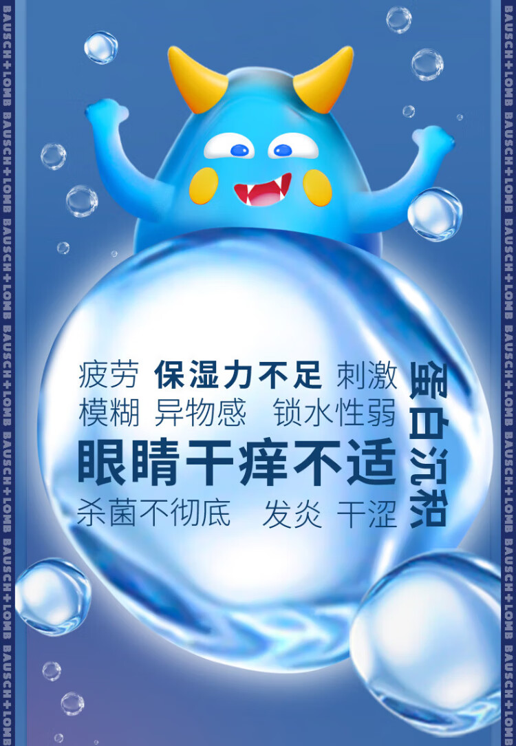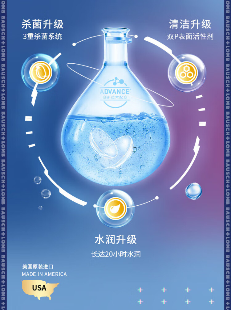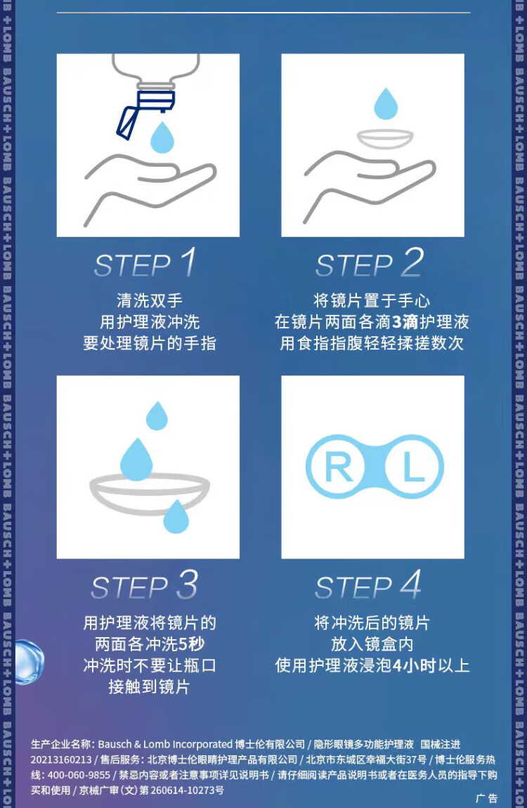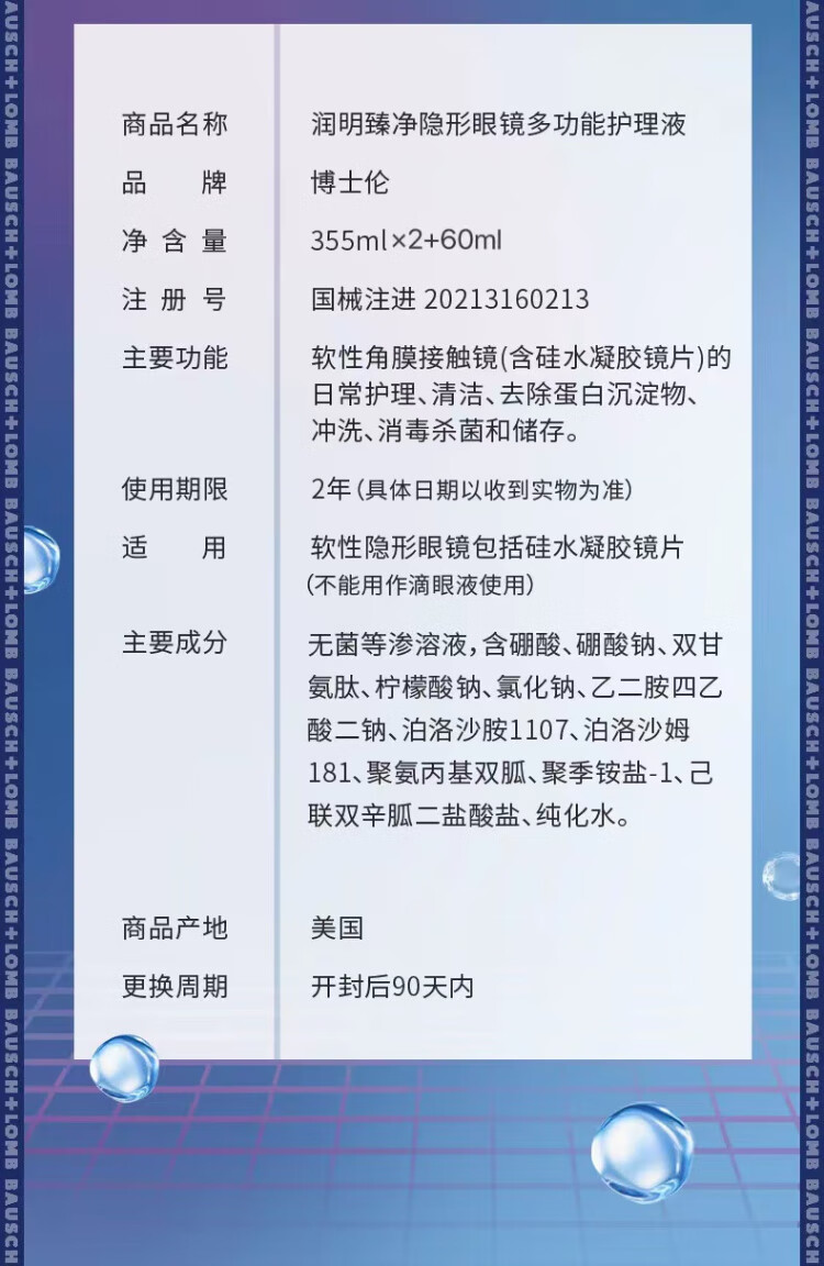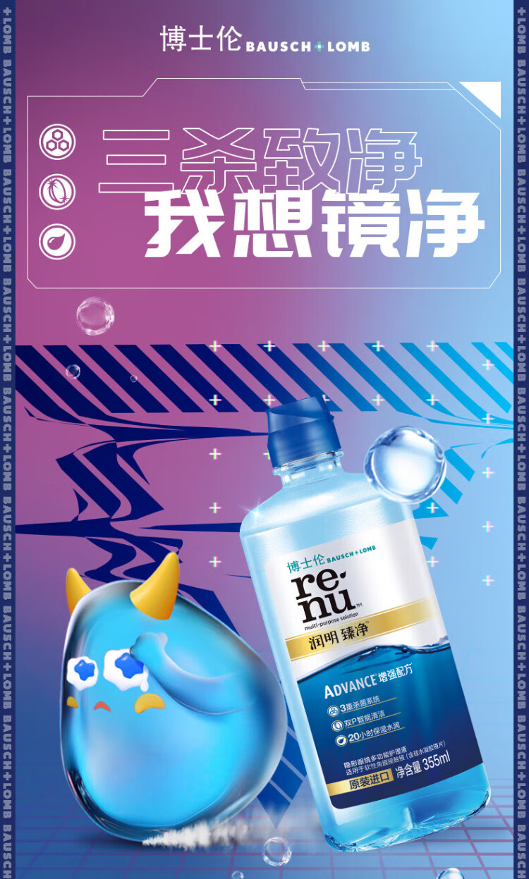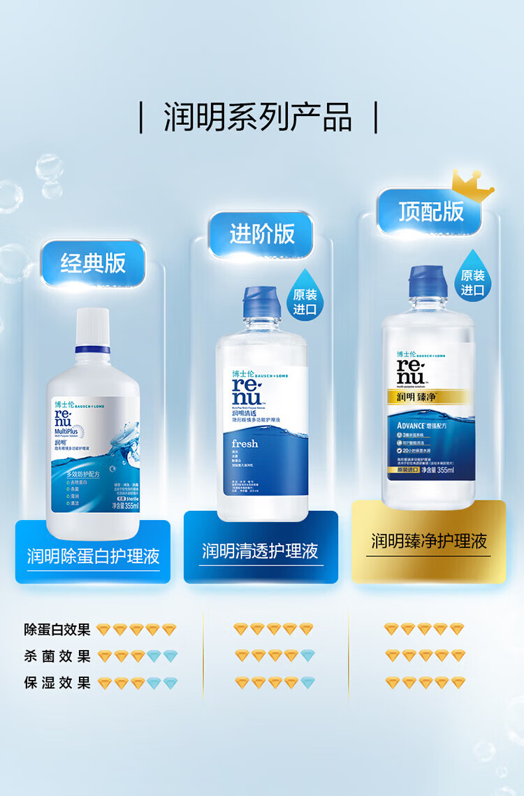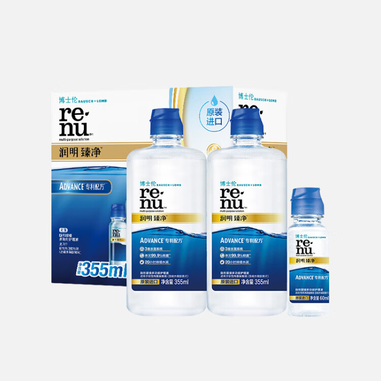 Bausch & Lomb Runming Zhenjing Contact Lens Water Care Solution Triple Sterilization Clear Upgrade Imported 355mlx2+60ml
