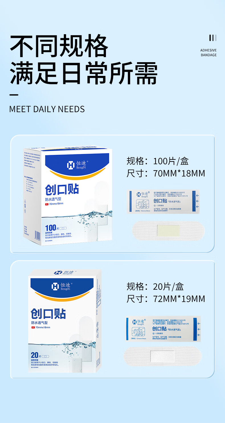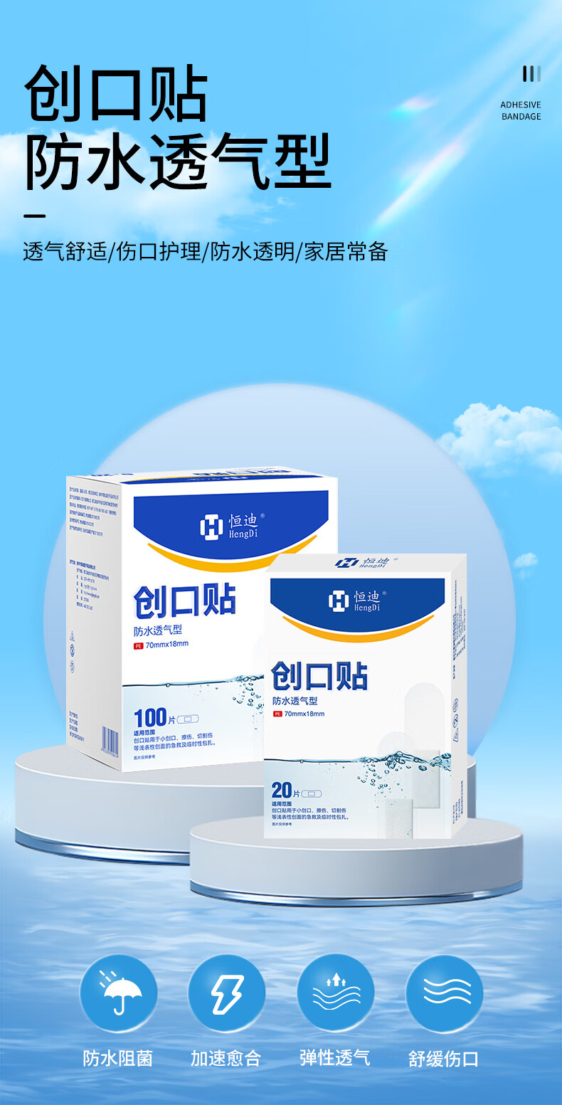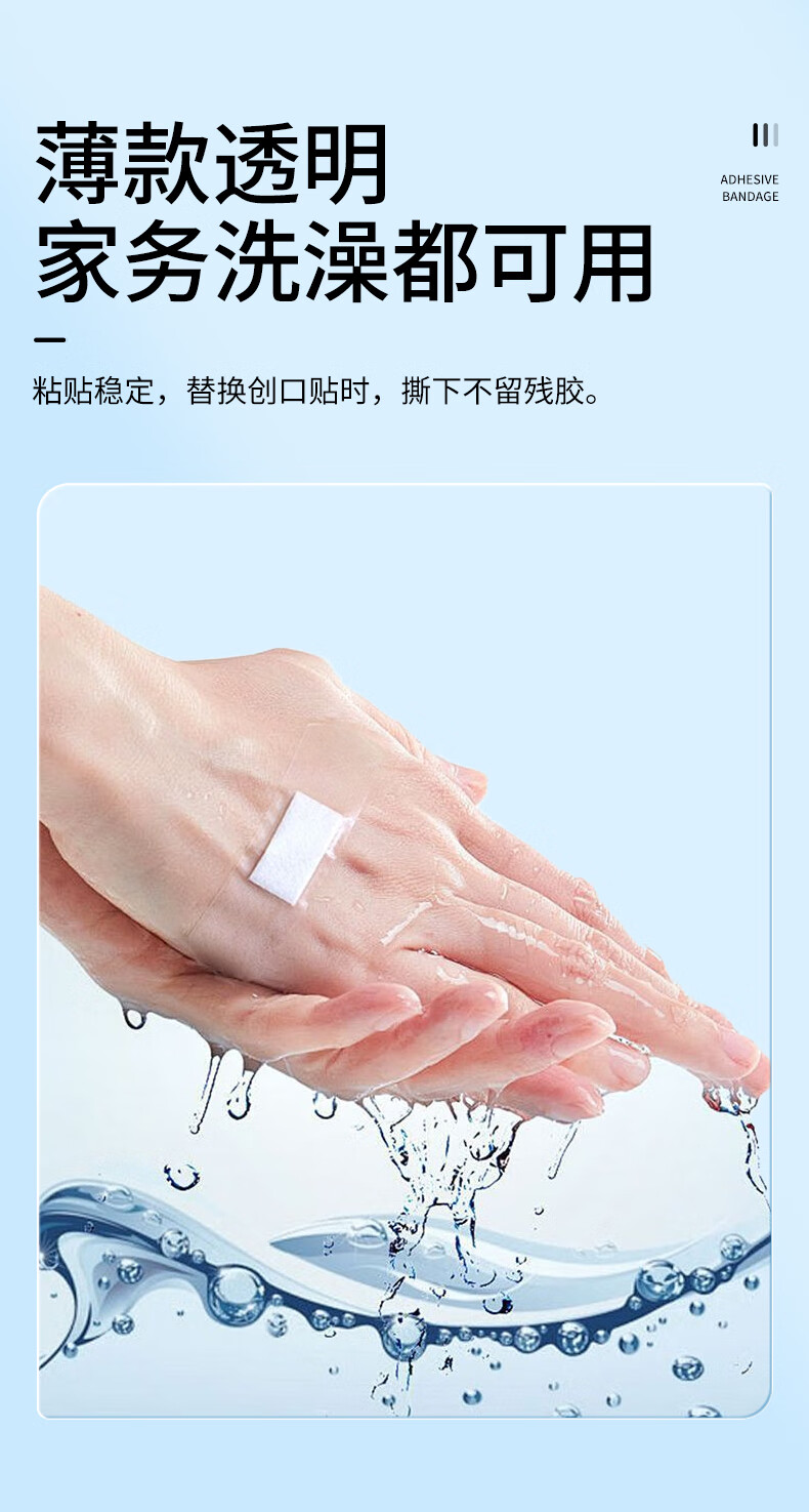 Band-Aid Waterproof Breathable Band-Aid Medical Large Transparent Bath Household Anti-Abrasive Foot Wound Hemostasis Waterproof Transparent Band-Aid 20 Pieces 1 Box