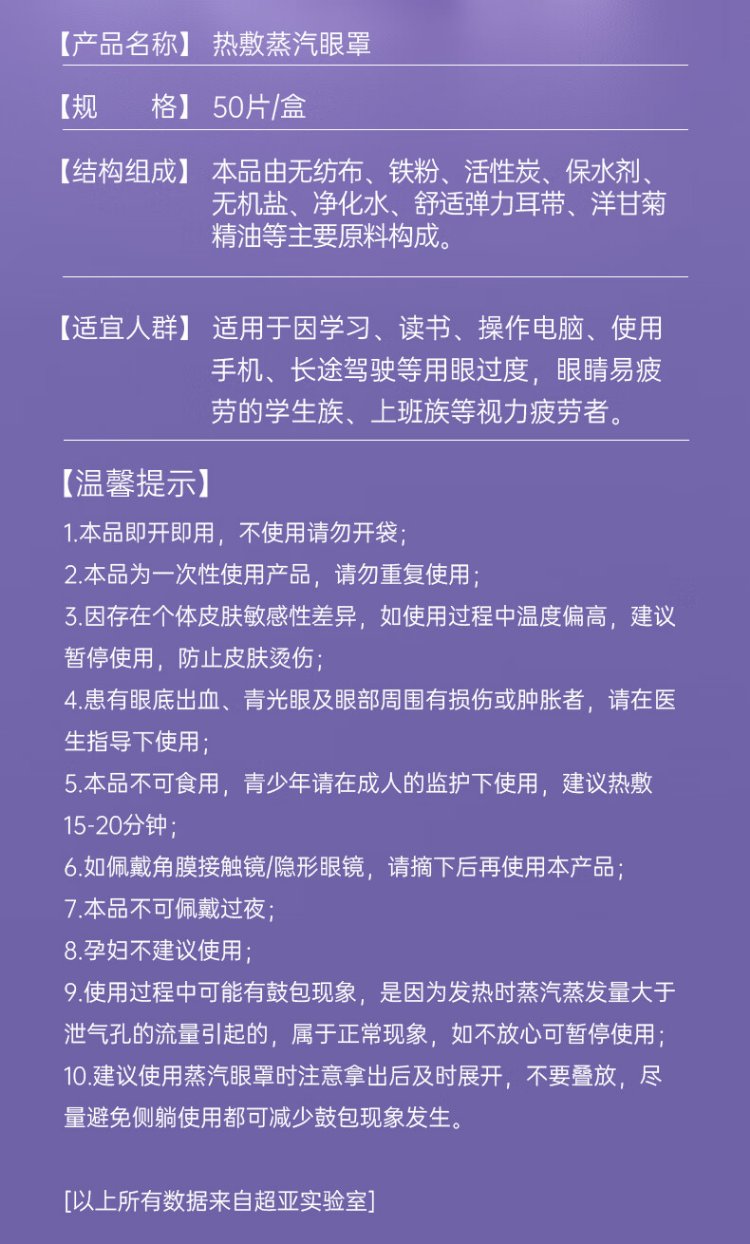 Super sub-health co-branded eye mask steam hot compress unscented sleep shading sleep relieve eye fatigue eye care 50 tablets