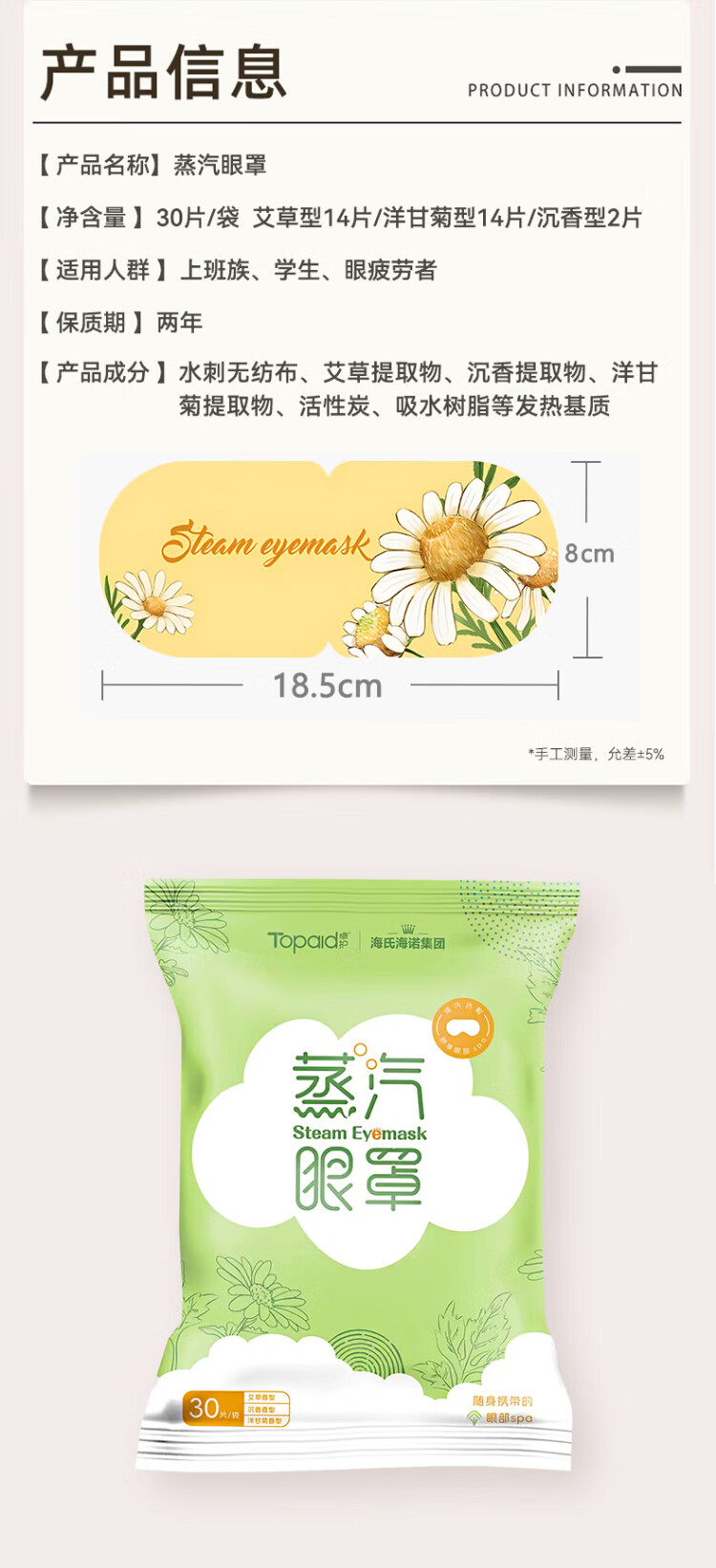 Haishi Hainuo Hot Compress Steam Eye Mask Eye Protection to Relieve Dry Eyes and Eye Fatigue (Chamomile 14 Mugwort 14 Agarwood 2) 30 tablets in total