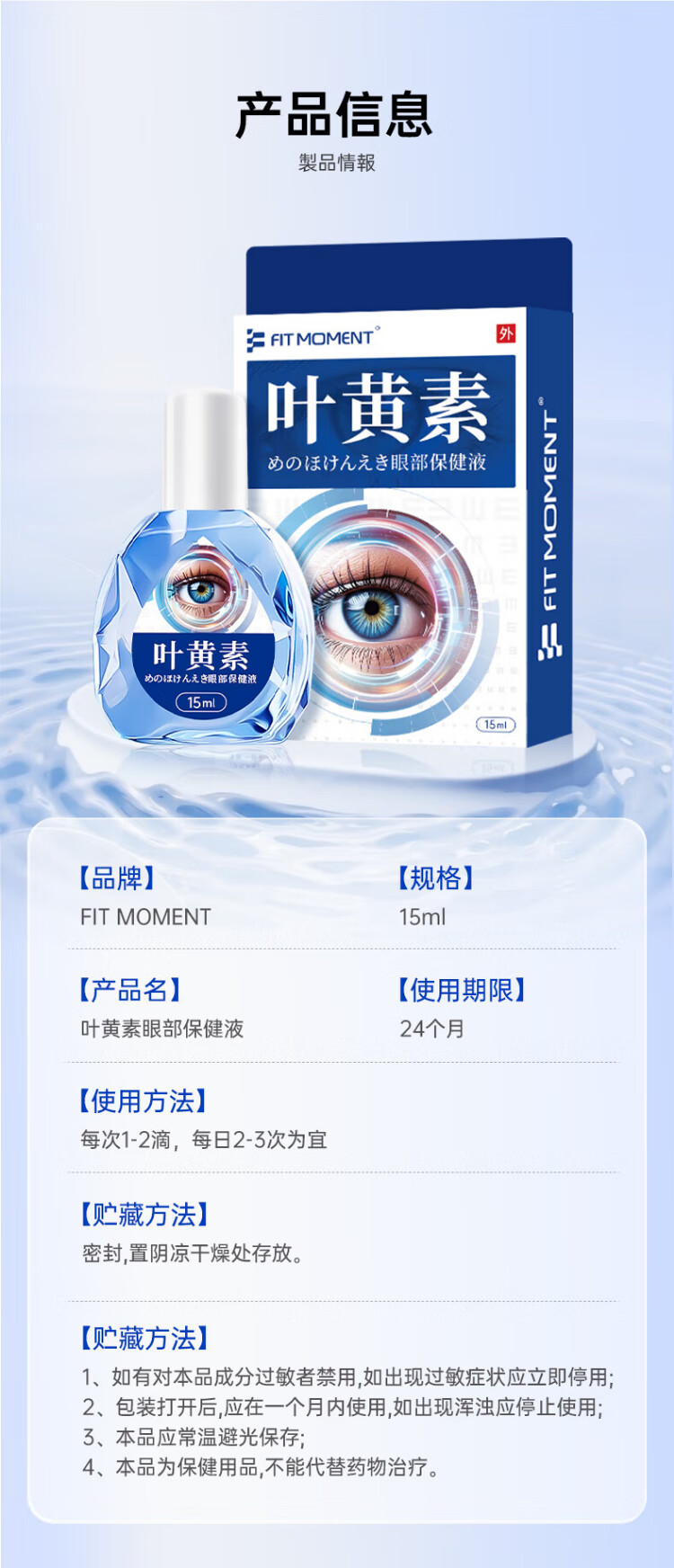 FIT MOMENT Lutein Eye Drops Non-Eye Drops Relieve Fatigue Dry Eyes Blurred Vision Healthy Solution for Staying Up Late and Playing with Mobile Phones