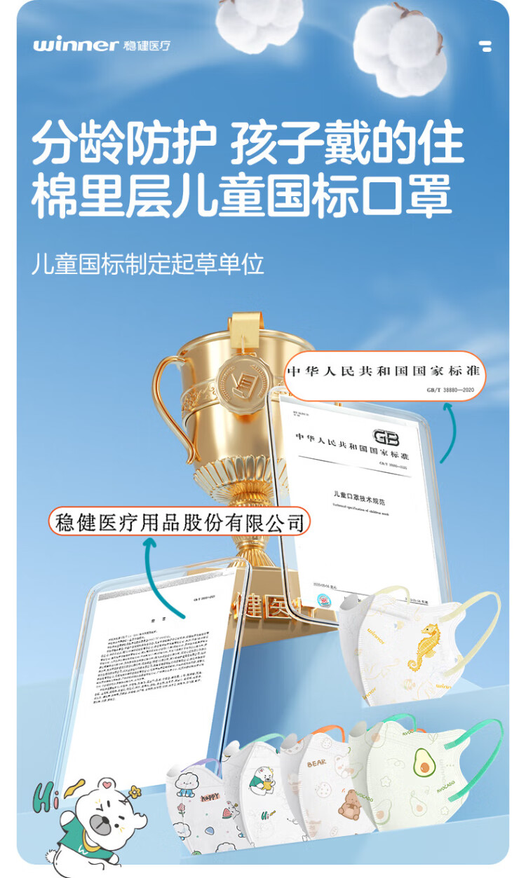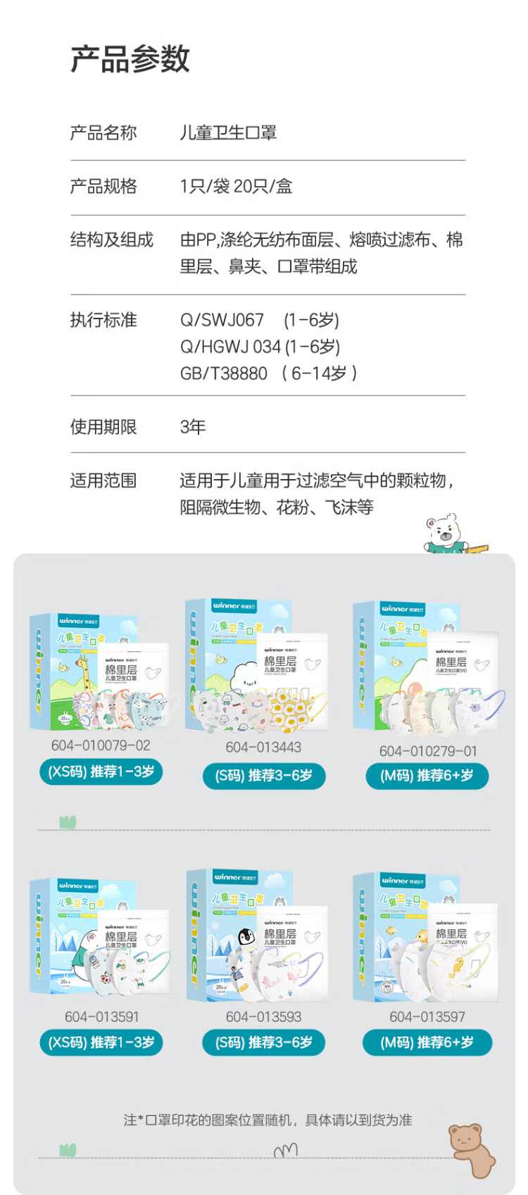 Robust cotton inner layer children's masks for 3-6 years old, individually packed, 20 pieces per bag, skin-friendly, breathable, dust-proof, warm in autumn and winter