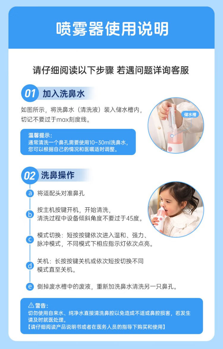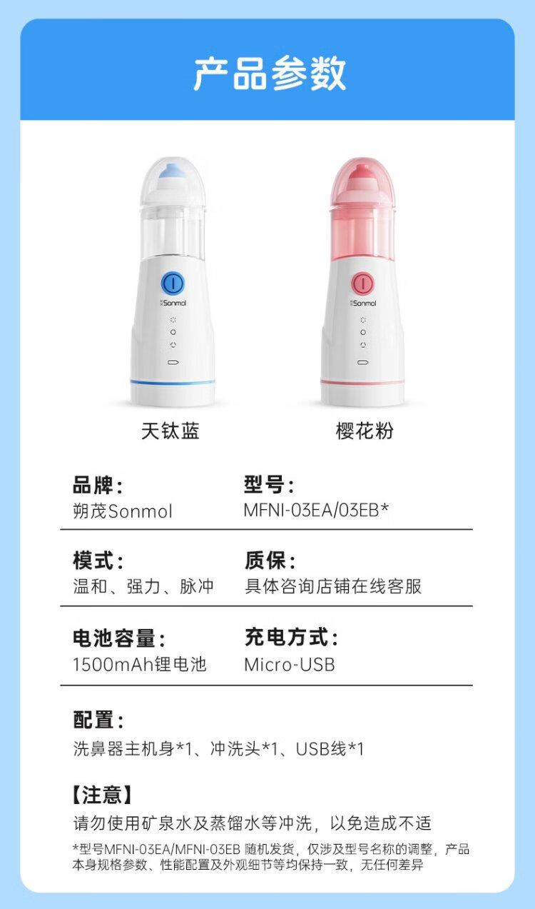 Sonmol Nasal Irrigator Children's Electric Spray Physiological Sea Salt Water Atomized Rhinitis Nasal Irrigator MFNI-03EB