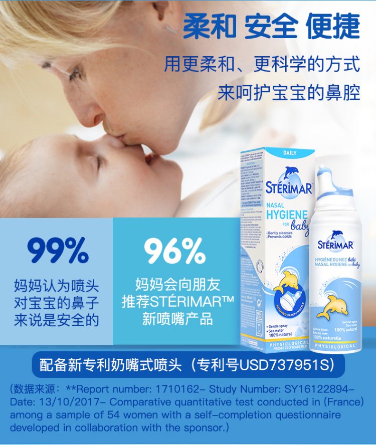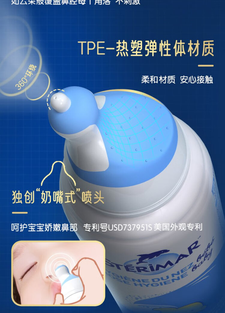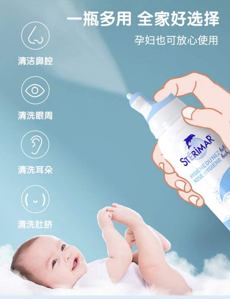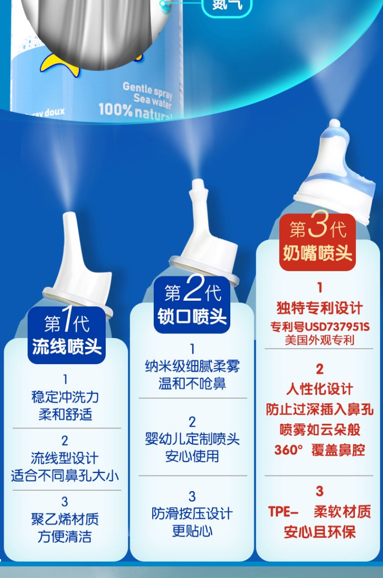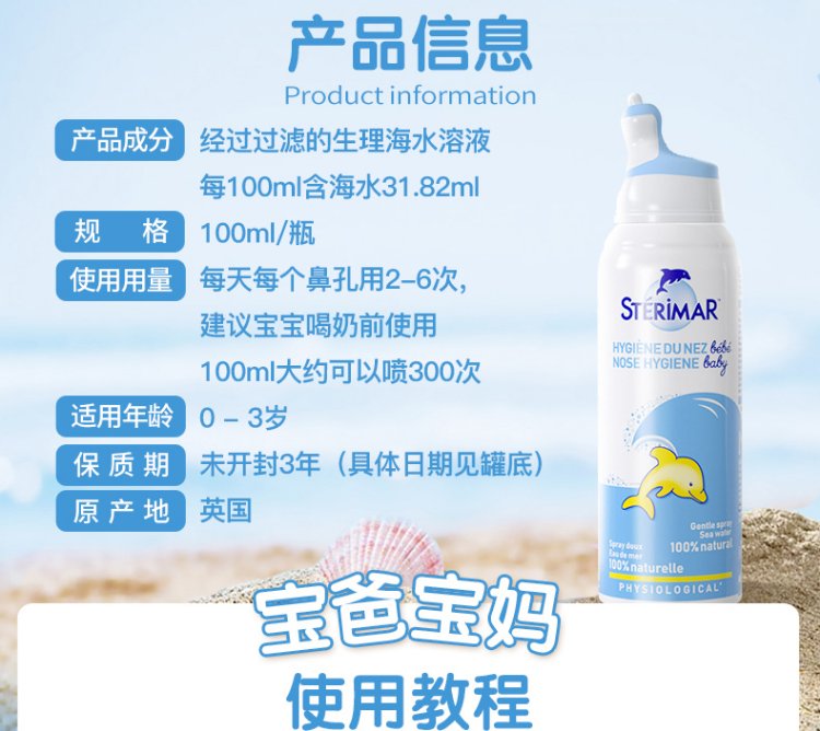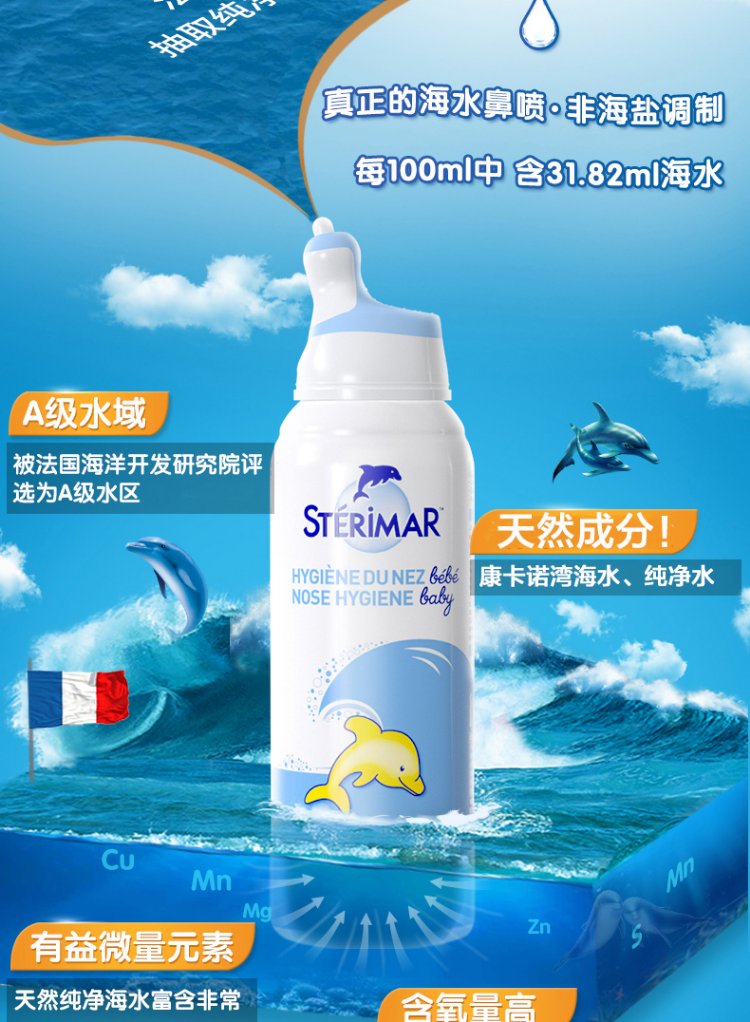 舒德尔玛(STERIMAR)小海豚海盐水喷鼻生理盐水鼻腔清洗婴儿奶嘴喷头100ml儿童洗鼻器