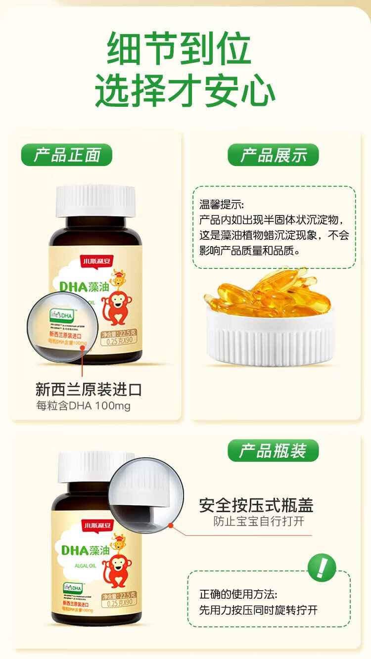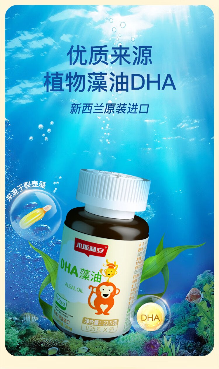 Sli'an infant and young children's DHA original imported 0-6 years old imported algae oil dha bottled 90 capsules