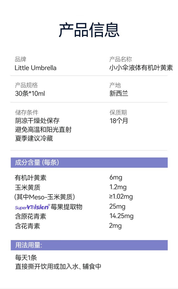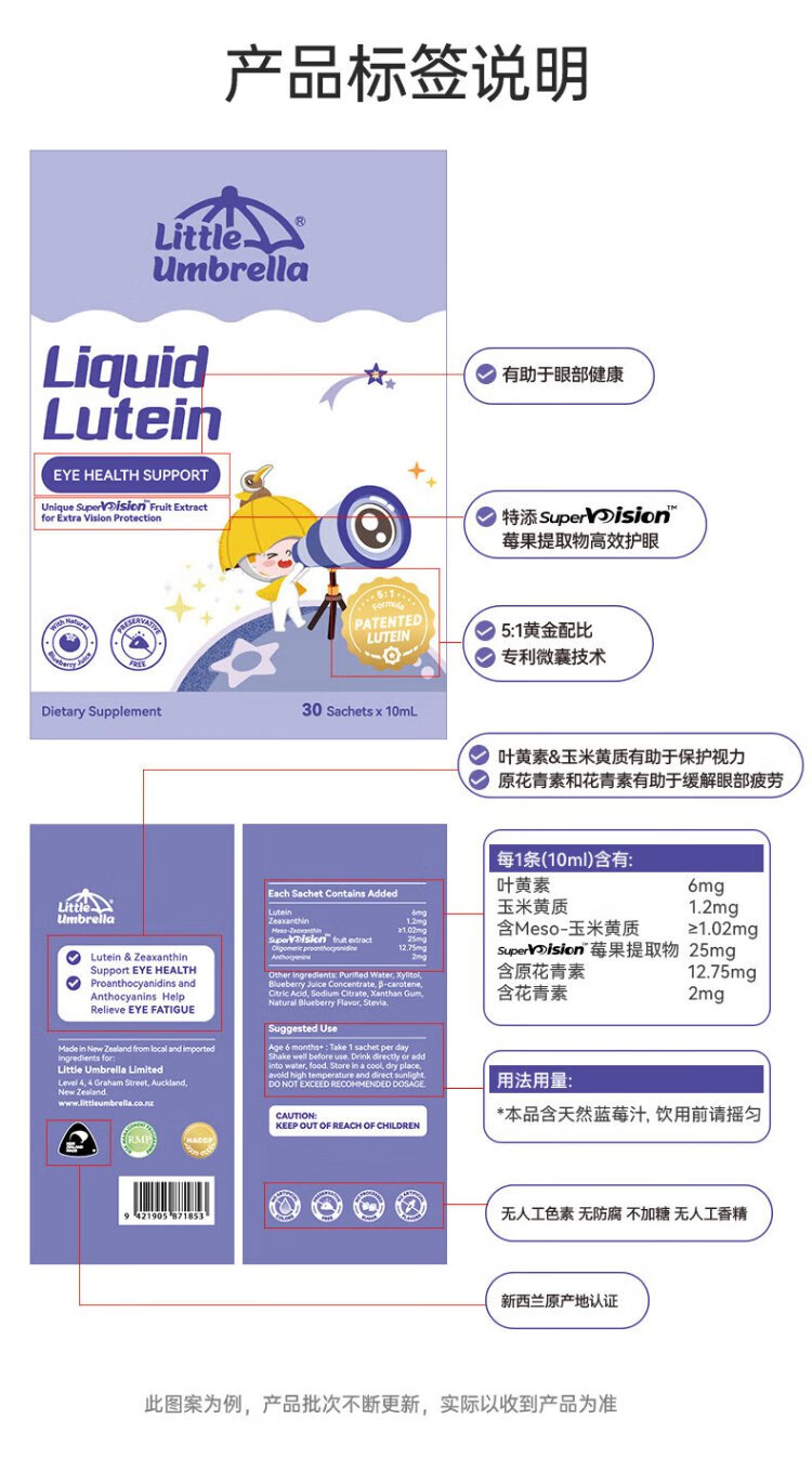 Xiaoxiao Umbrella Liquid Organic Lutein 6 Months + Infants and Children Eye Care Blue Light Protection for Back-to-School Season 30 Strips * 3 Boxes