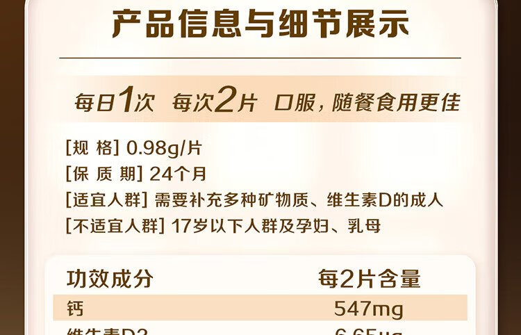 Calcium Calcium Calcium Calcium Calcium Tablets 100 tablets * 2 women's adult middle-aged and elderly calcium tablets to supplement calcium and vitamin D