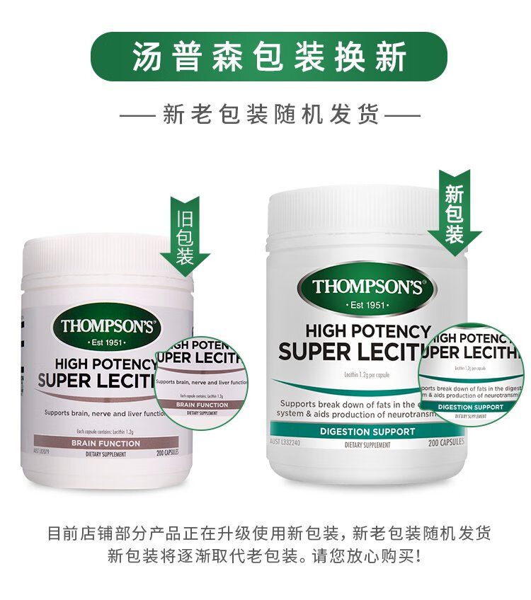 汤普森(Thompson's)高浓度大豆卵磷脂软胶囊1200mg200粒/瓶 中老年调节心脑肝