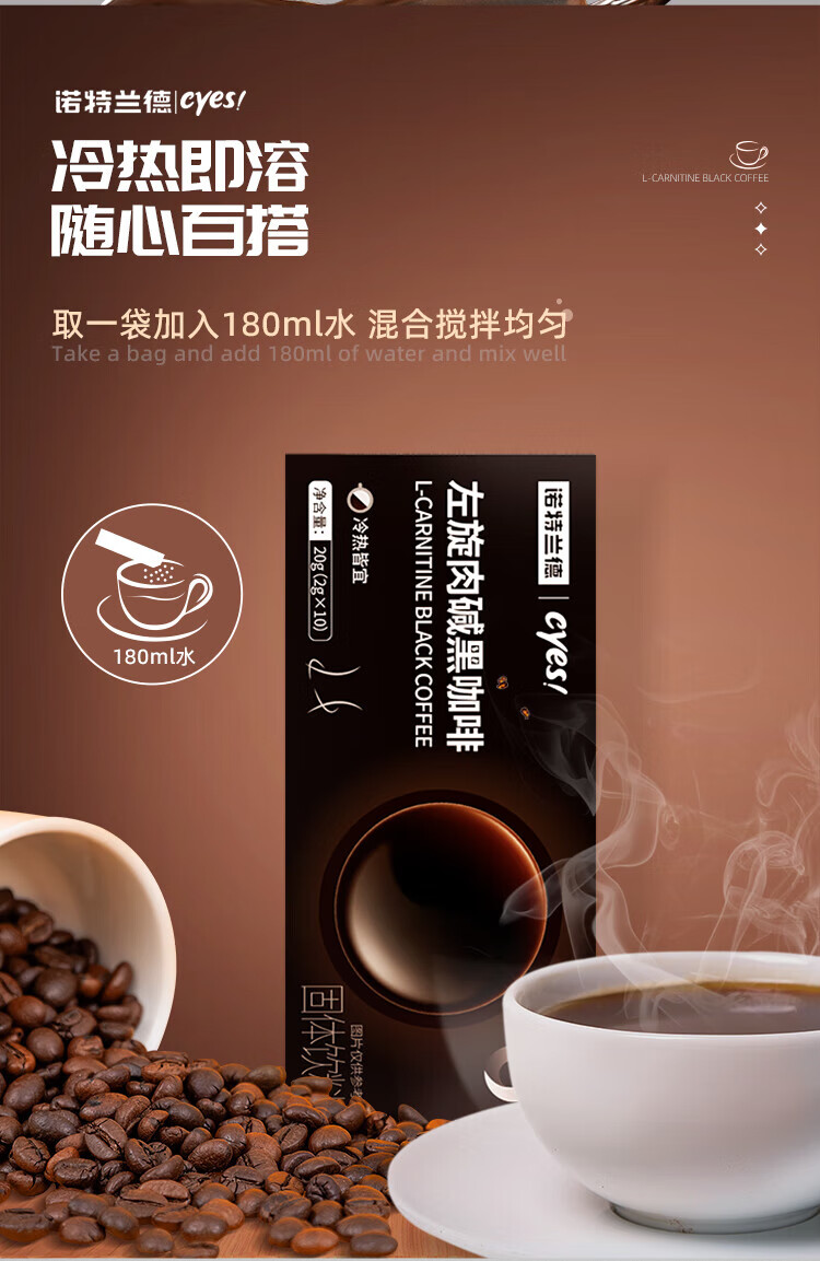 Notland cyes L-carnitine black coffee hot and cold double-shot instant American brewed beverage 10 bags/box