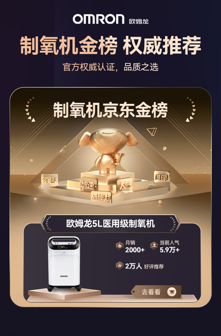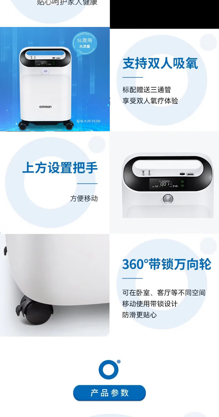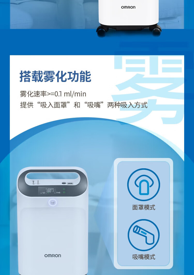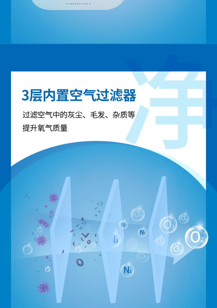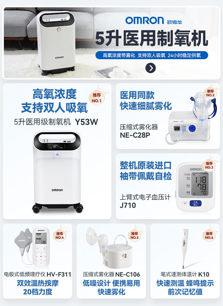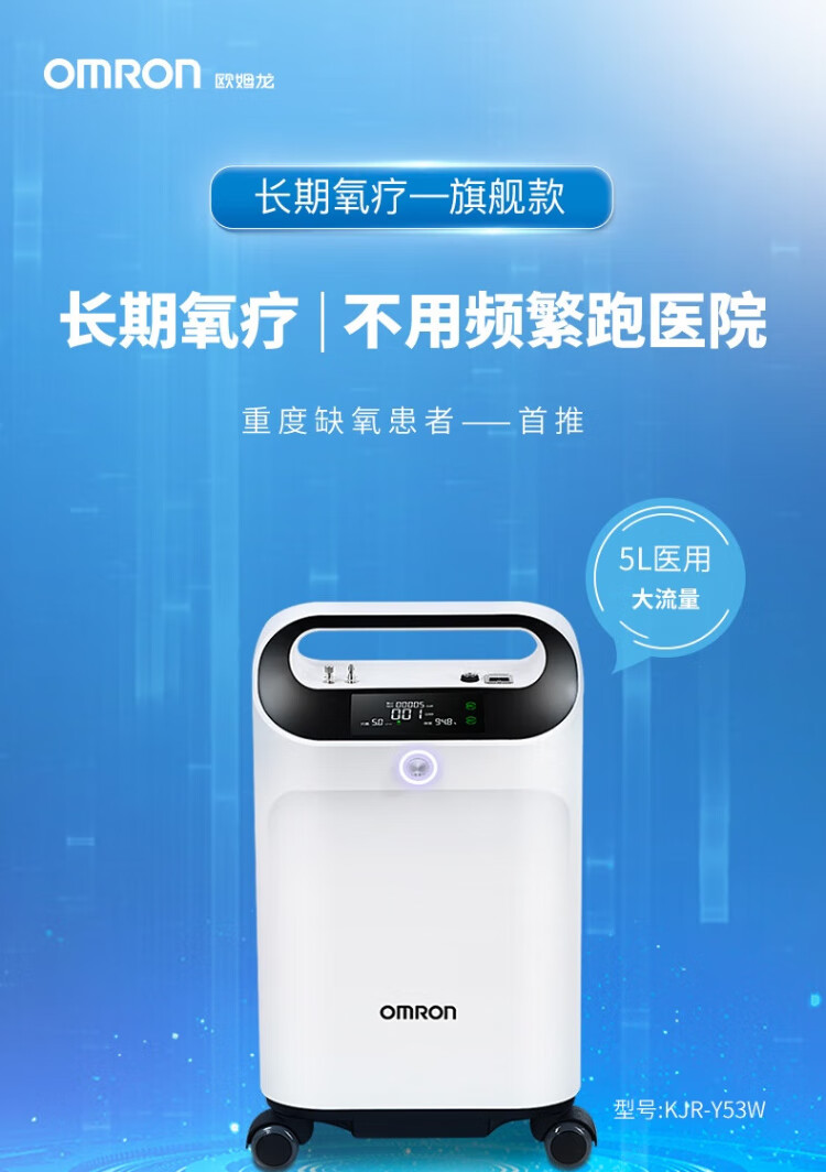 Omron Medical Oxygen Concentrator Household 5L Oxygen Inhaler Household Elderly Oxygen Machine Light Sound Belt Atomized Double Oxygen Inhaler Y53W