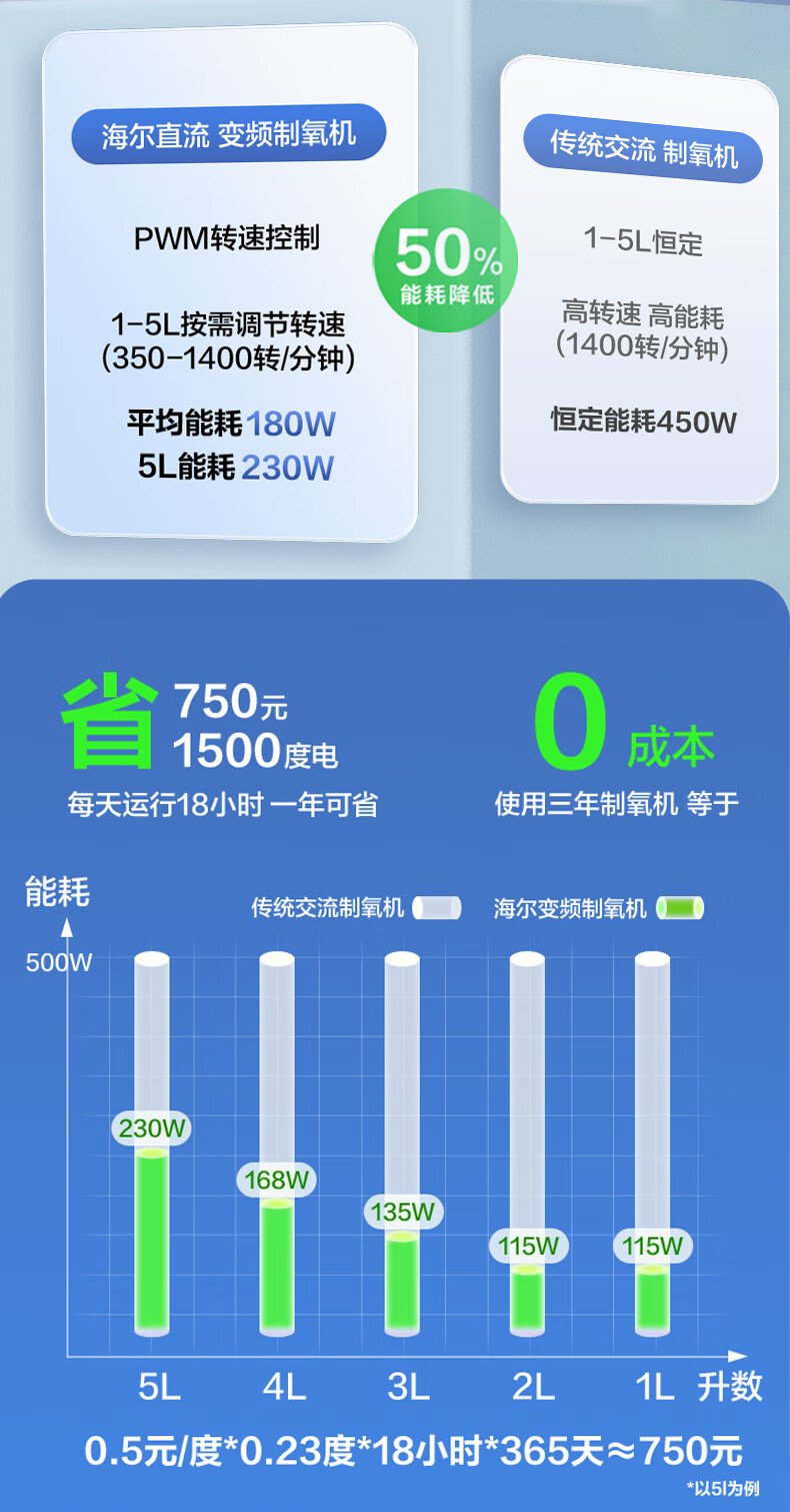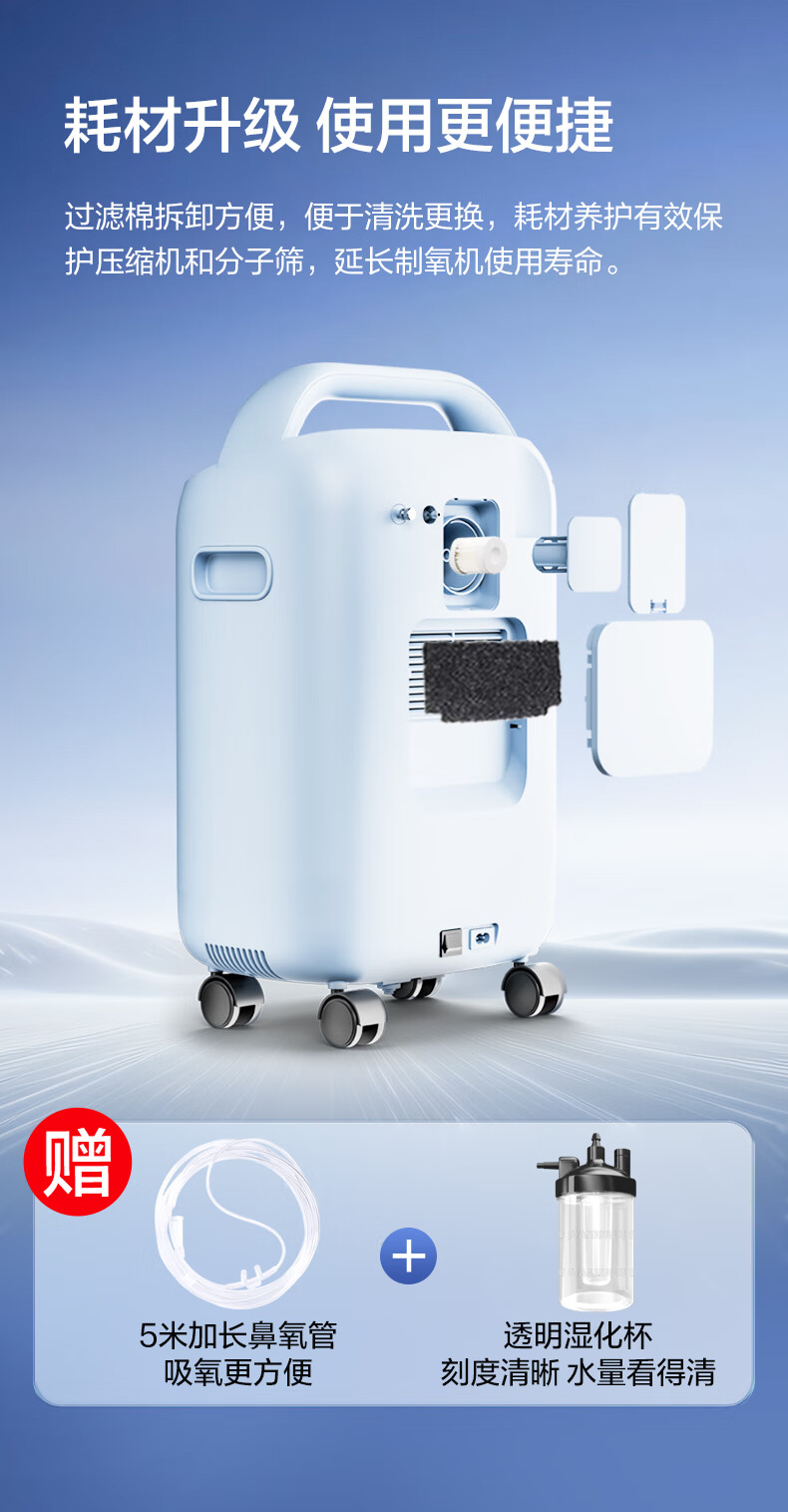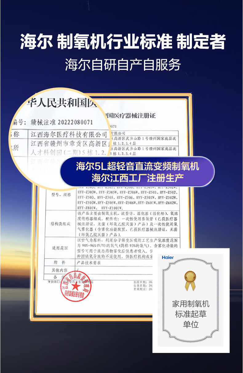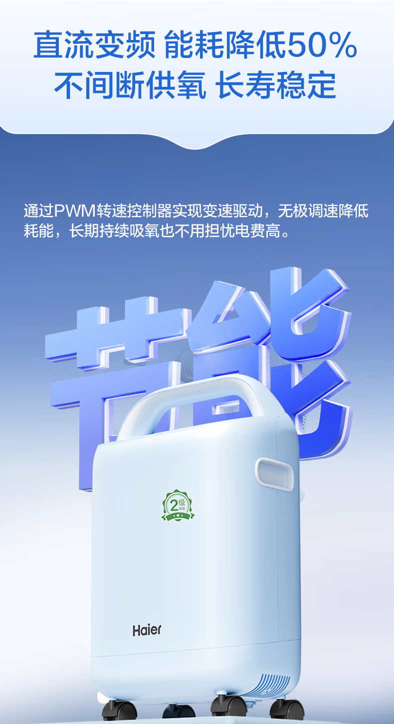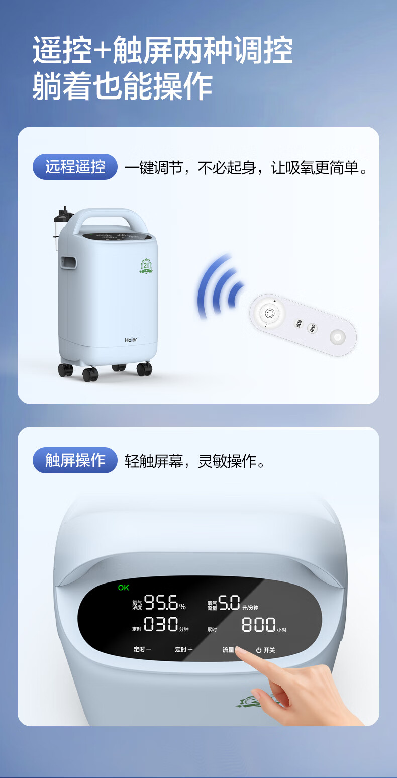 Haier 5L oxygen concentrator home medical grade oxygen inhaler for the elderly with atomization DC frequency conversion ultra-light sound 507W national supplement