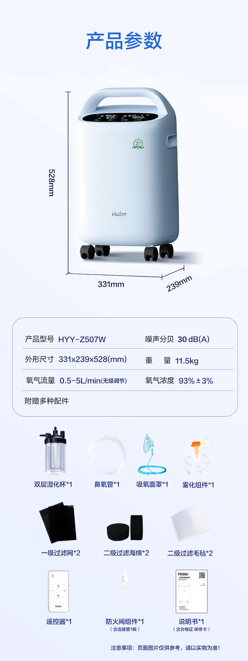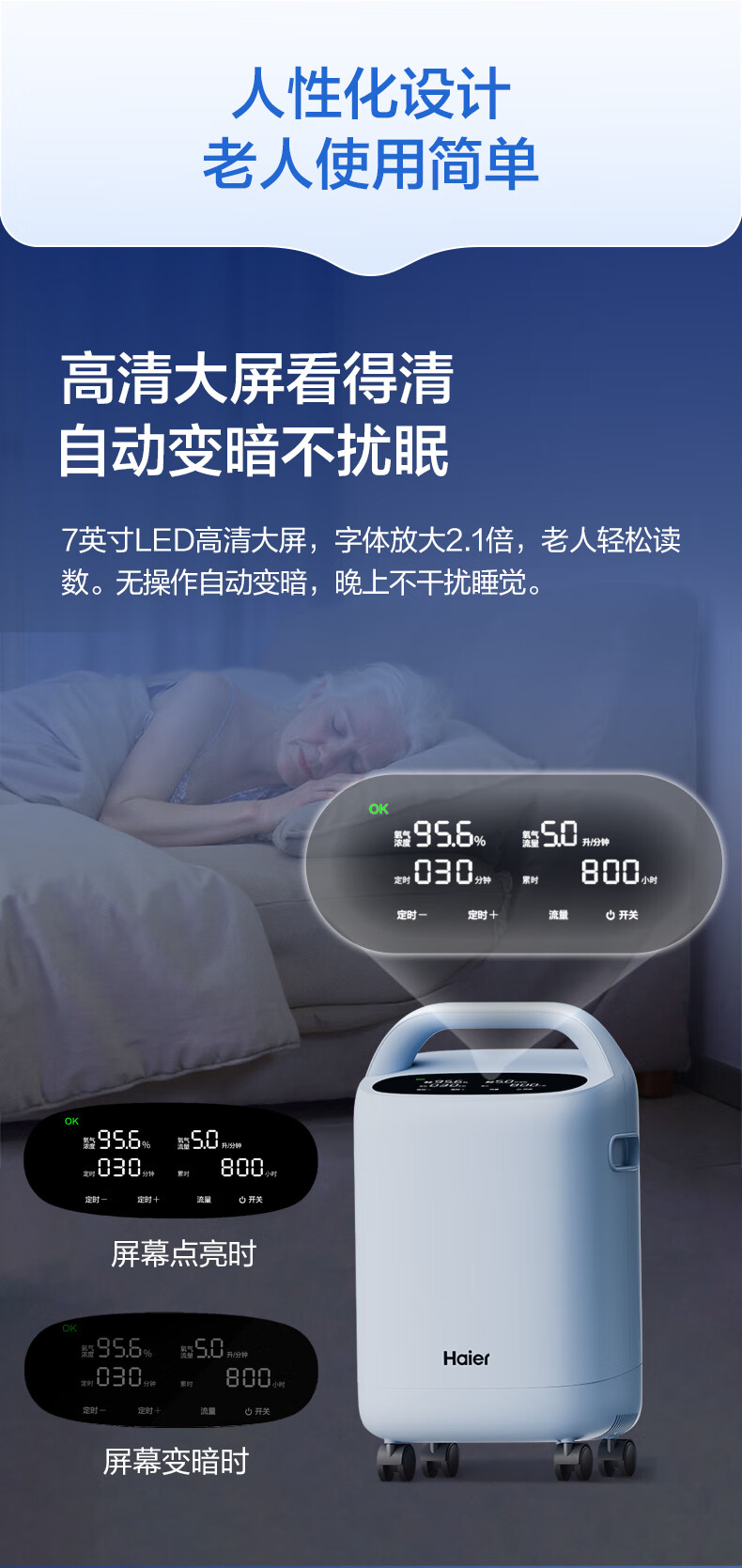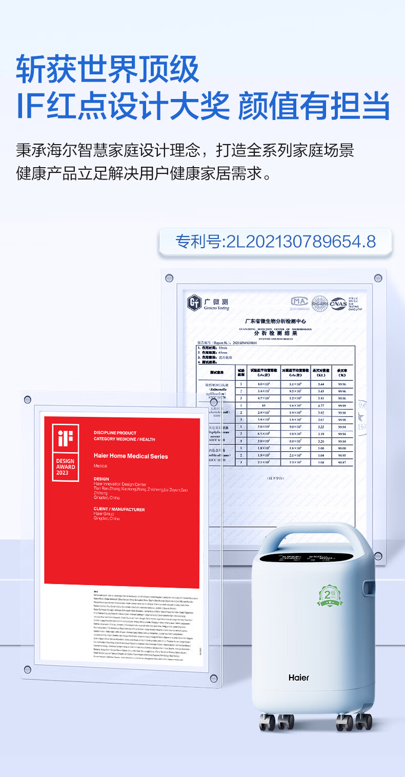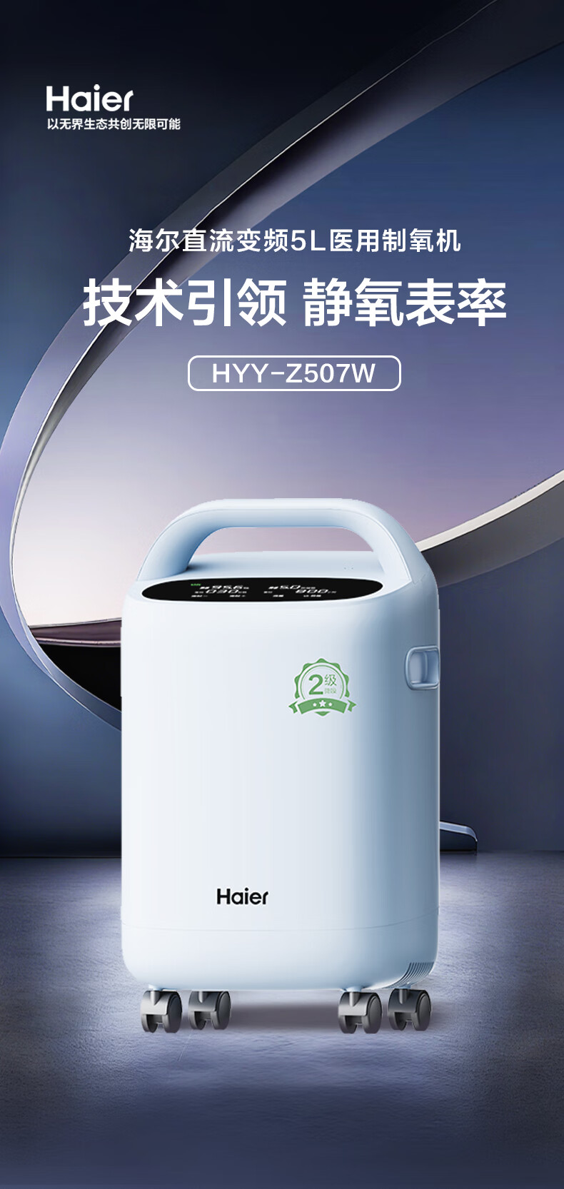 Haier 5L oxygen concentrator home medical grade oxygen inhaler for the elderly with atomization DC frequency conversion ultra-light sound 507W national supplement