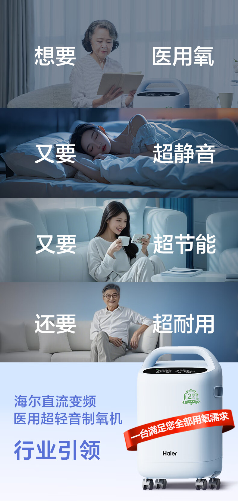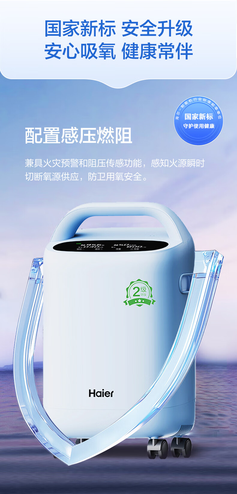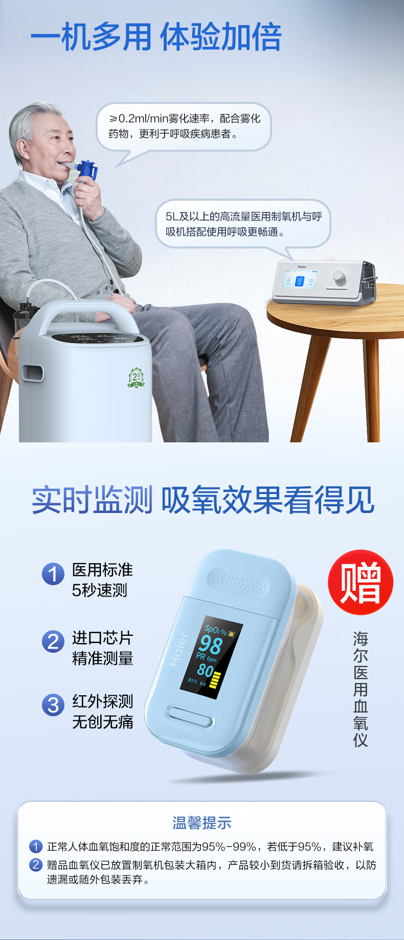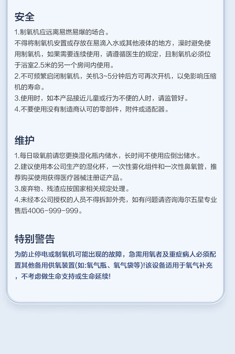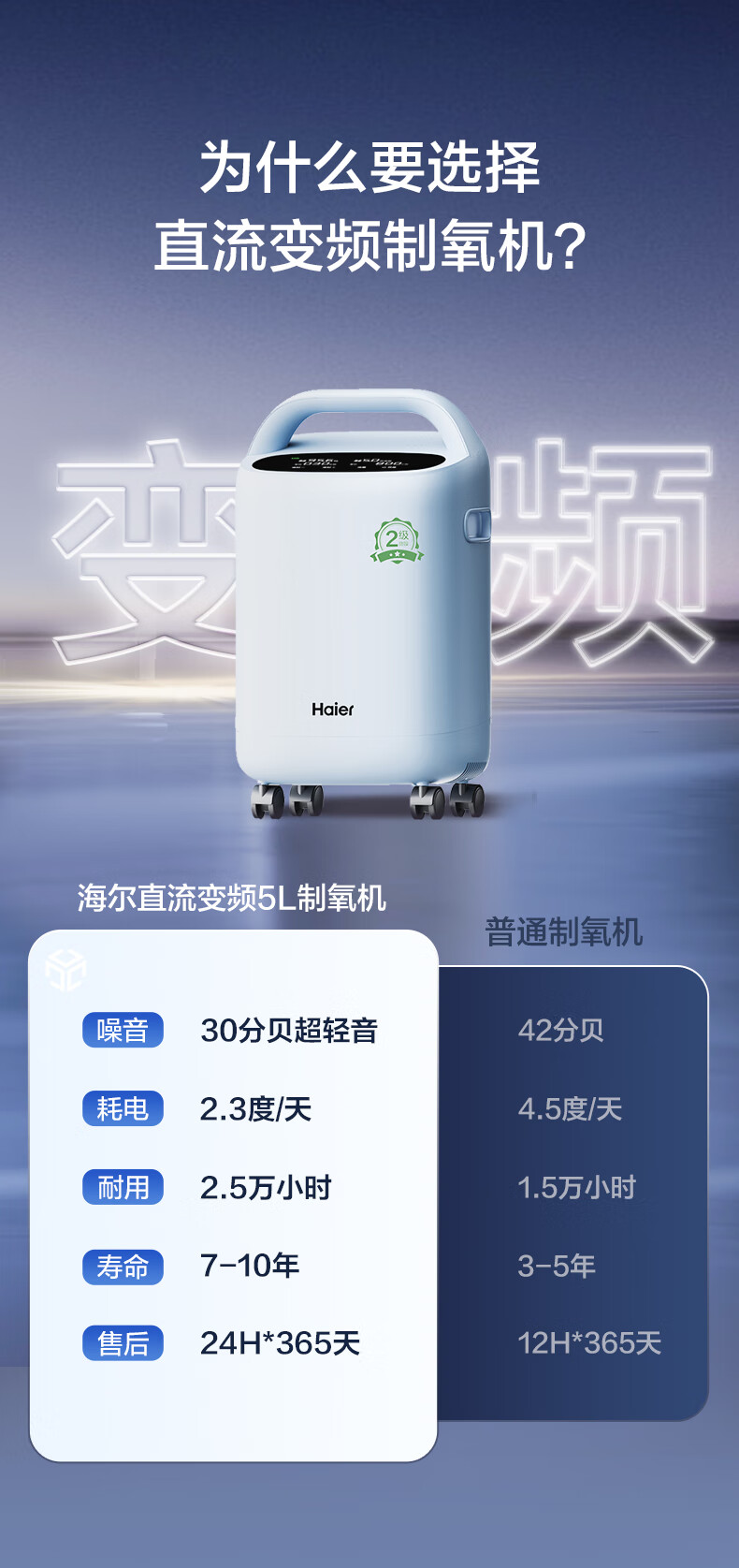 Haier 5L oxygen concentrator home medical grade oxygen inhaler for the elderly with atomization DC frequency conversion ultra-light sound 507W national supplement
