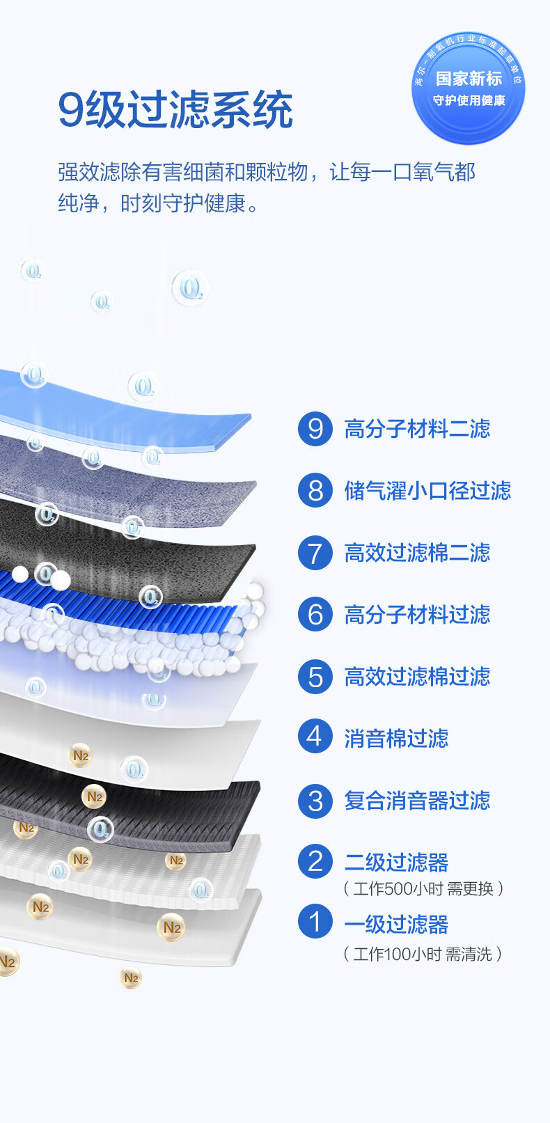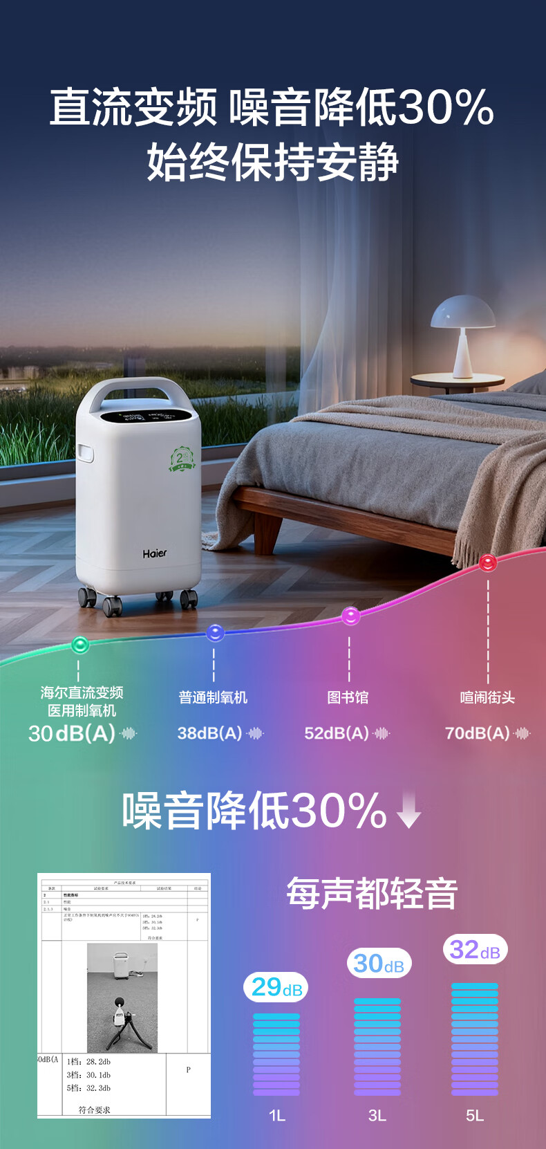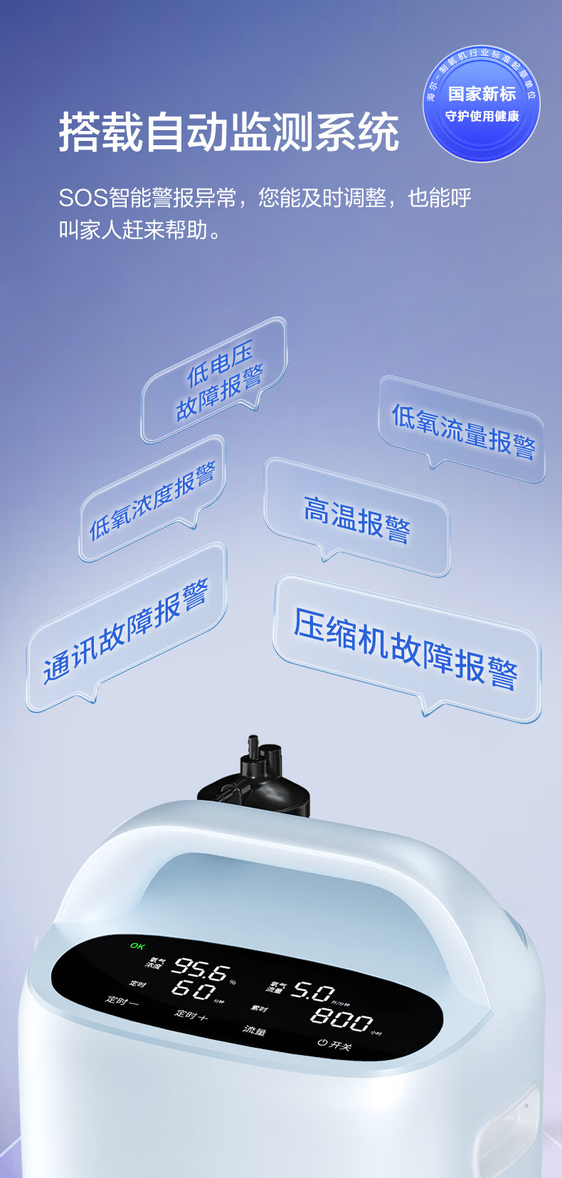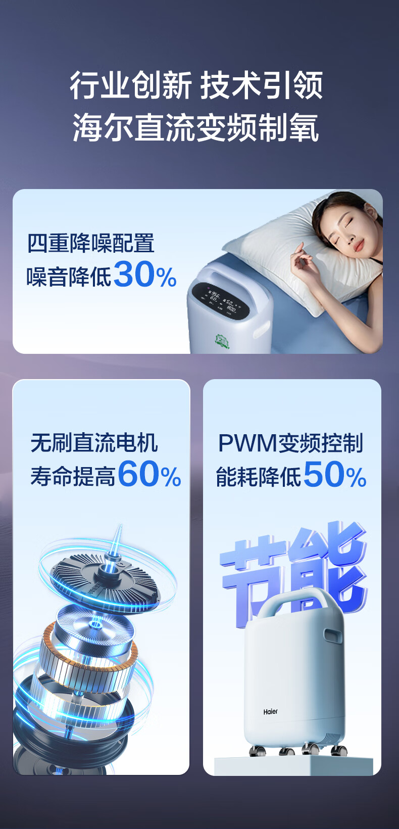 Haier 5L oxygen concentrator home medical grade oxygen inhaler for the elderly with atomization DC frequency conversion ultra-light sound 507W national supplement