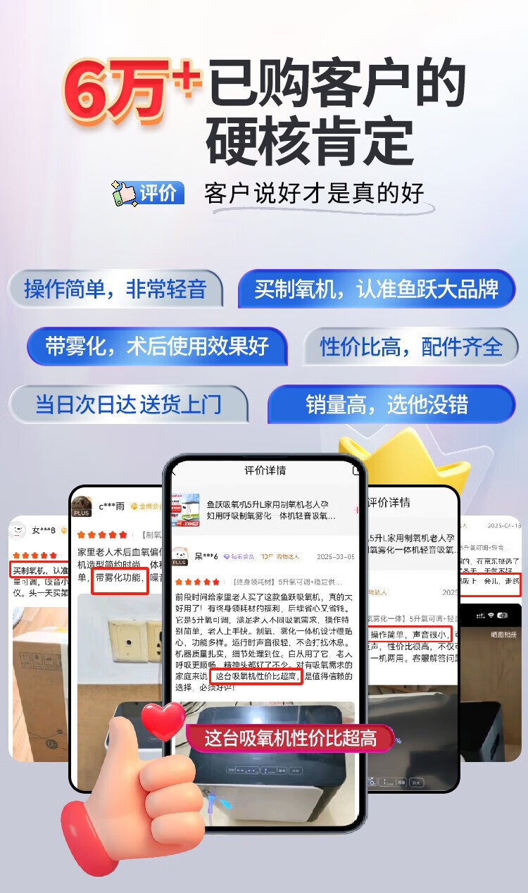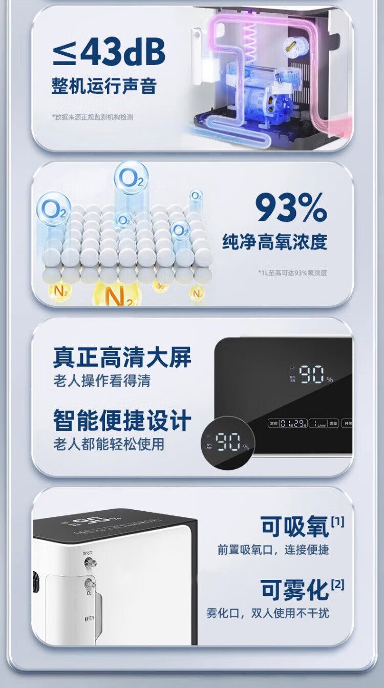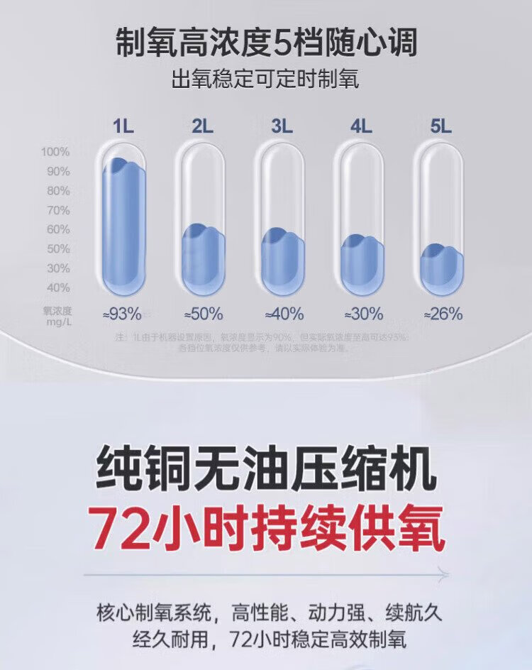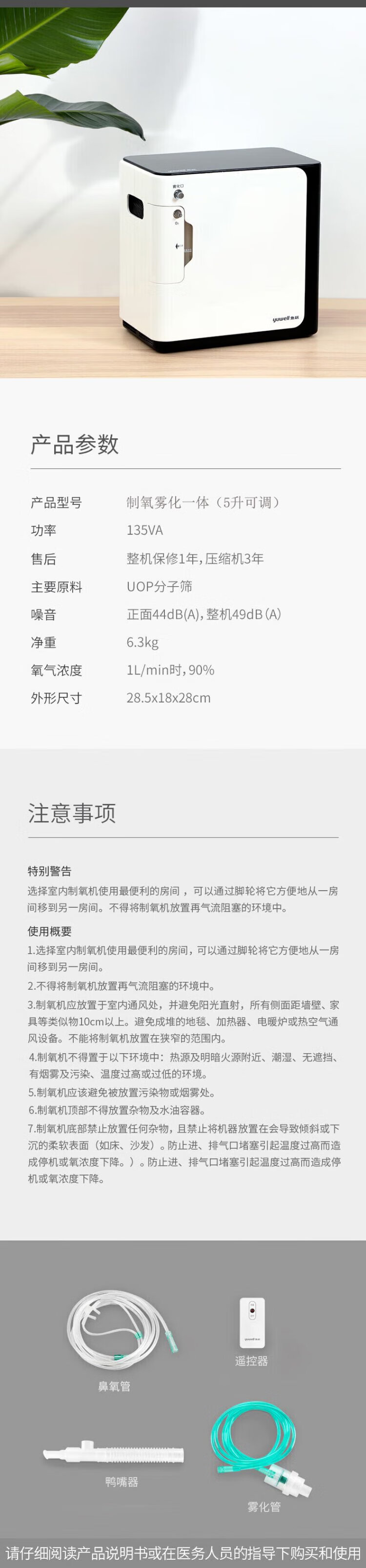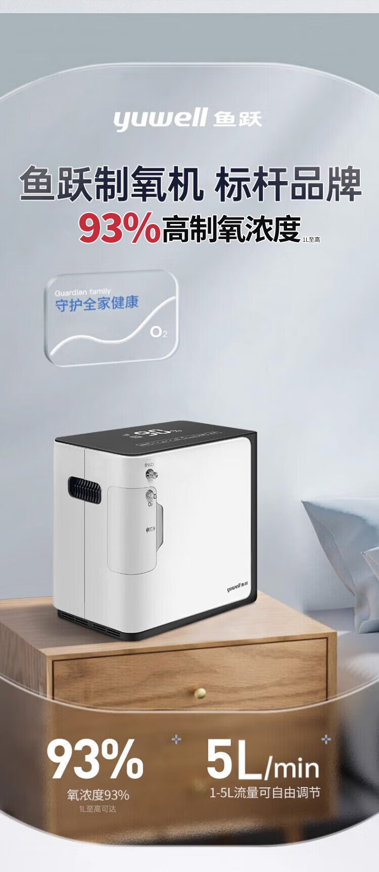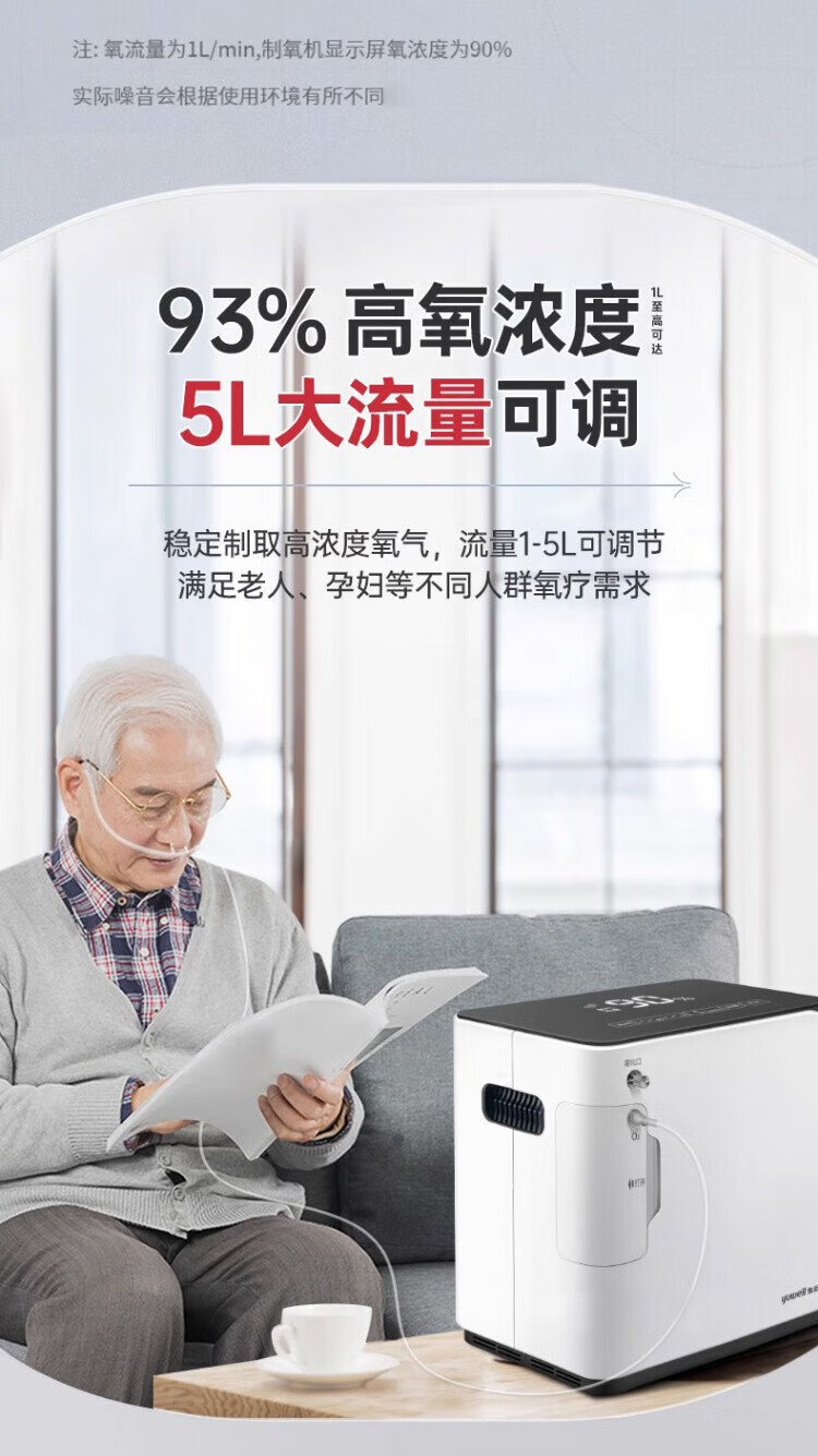 Yuyue oxygen inhaler 5 liters L household oxygen concentrator for the elderly and pregnant women breathing oxygen and atomizing all-in-one light oxygen inhaling machine oxygen and atomizing all in one 5 liters of oxygen adjustable + light oxygen making + 24h timing