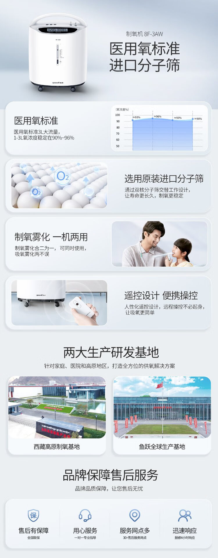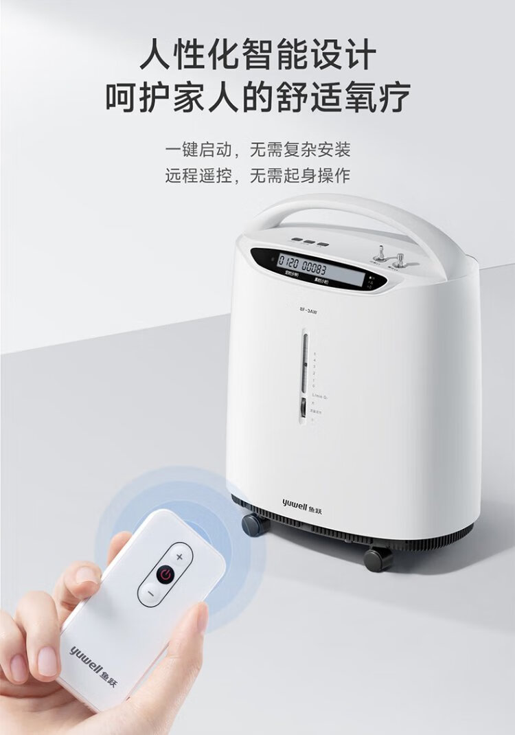 Yuwell 3-liter new national standard medical oxygen concentrator comfortable oxygen therapy wireless remote control oxygen belt atomization 8F-3AW