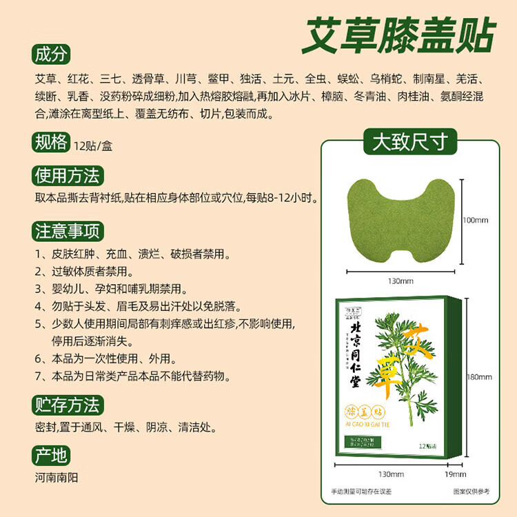 Tong Ren Tang Beifuß-Kniepflaster, gesundes Moxibustionspflaster, Kniegelenk-Beifuß-Patch, 12 Pflaster/Box