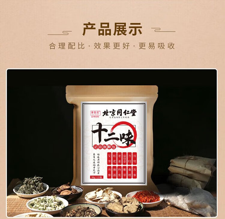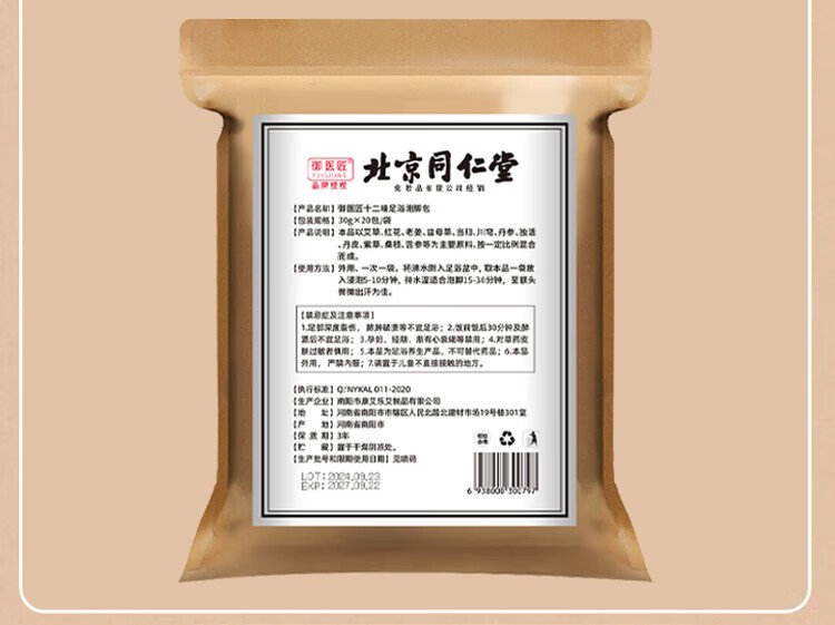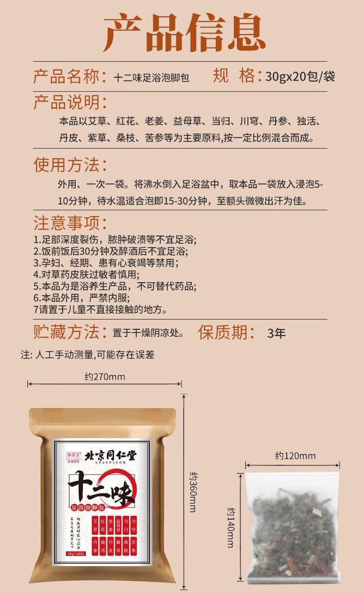 Tongrentang twelve-flavor foot bath bag, mugwort health foot bath bag, Laojiang Yao foot bath bag, 30g*20 bags/bag
