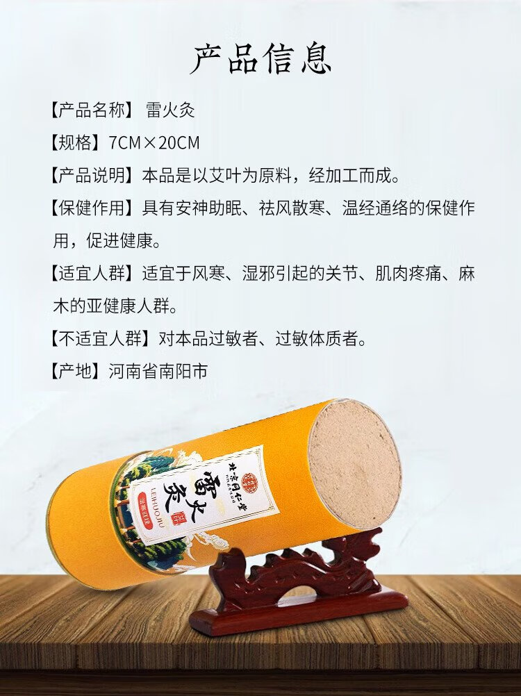 Tongrentang Thunder Fire Moxibustion Moxibustion Column 7cm Bold Aged Moxibustion Column Moxa Velvet Column Hot Compress Hand-Push Column
