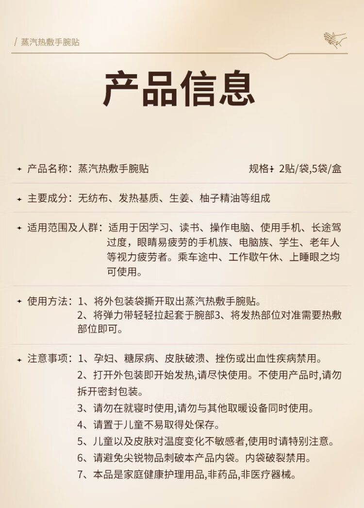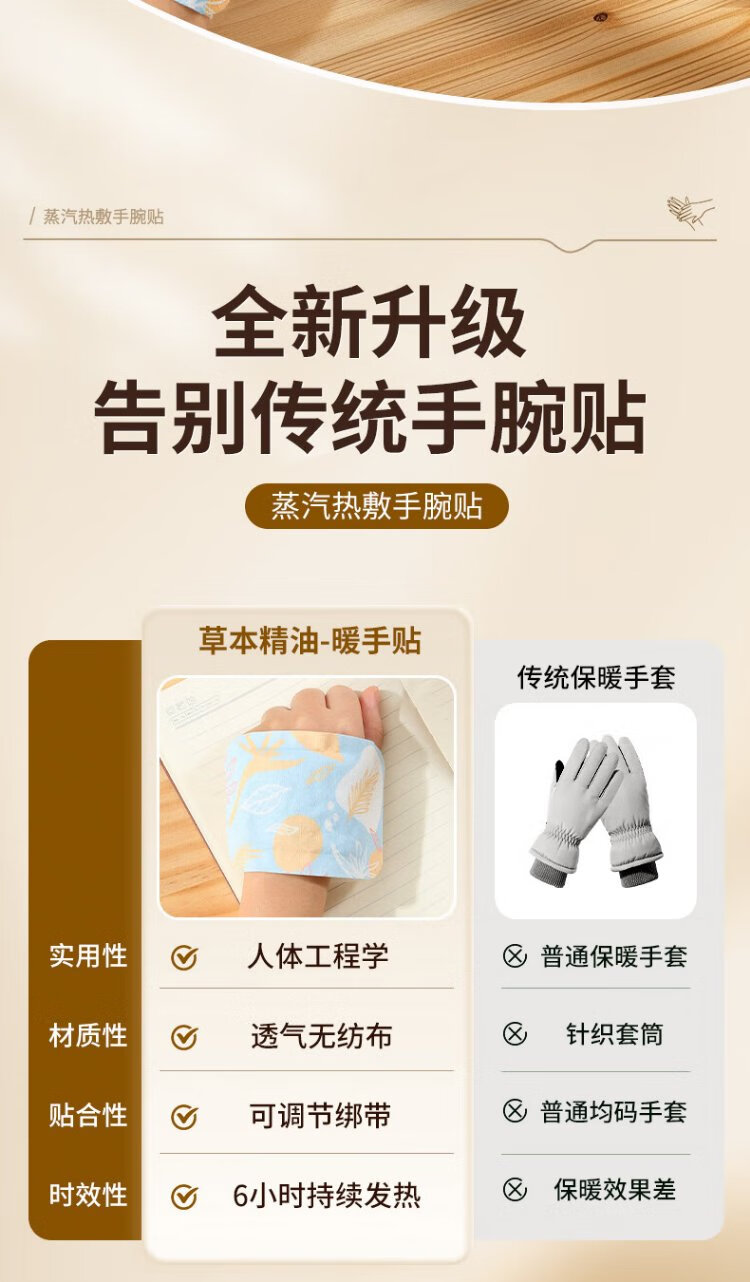 Kong Aitang Tongrentang Steam Hot Compress Patch Hand Warmer Tenosynovitis Wrist Mouse Hand Wristband Self-heating Portable 10 Patch