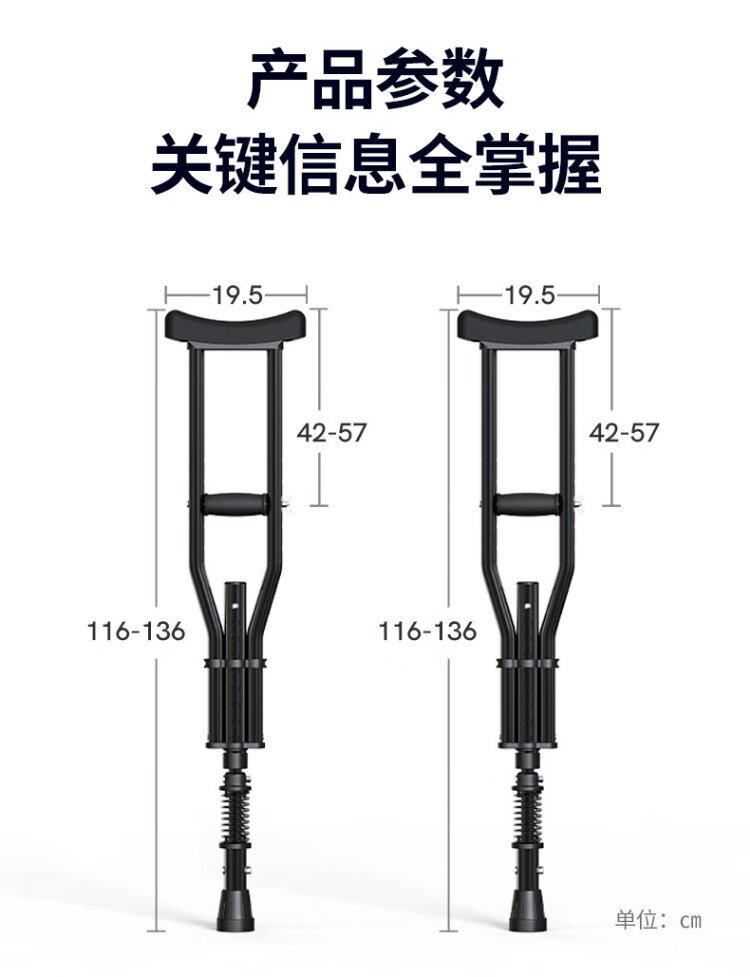 YADECARE medical crutches for disabled people with fractured armpit crutches for the elderly lightweight non-slip walker double crutches 8120CM2