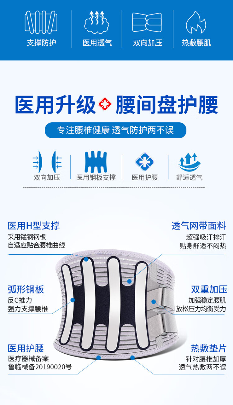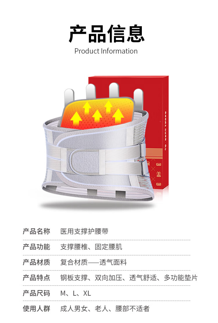 Standing (lizi) medical support belt, lumbar disc herniation, lumbar muscle strain, lumbar circumference surgery, steel plate lumbar support protective gear V-shaped L