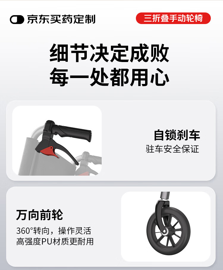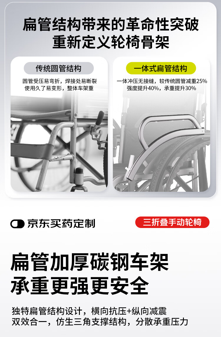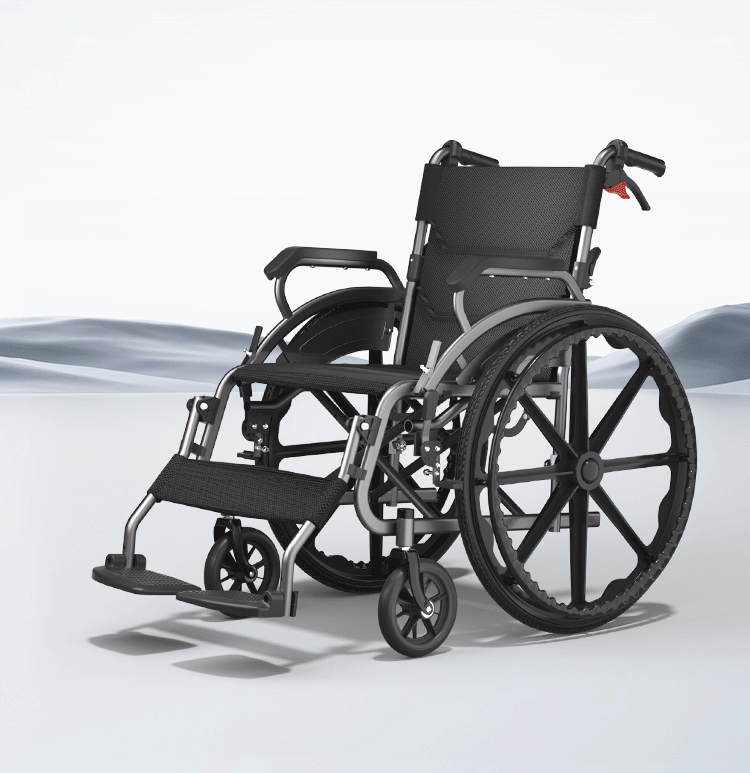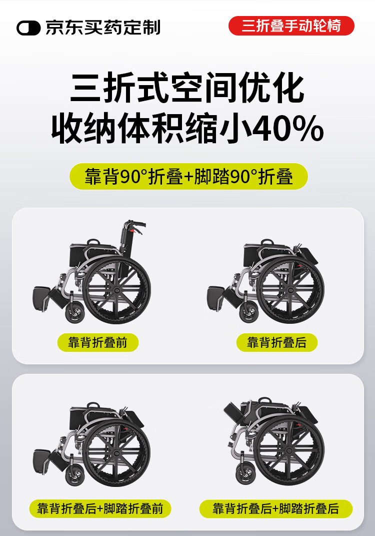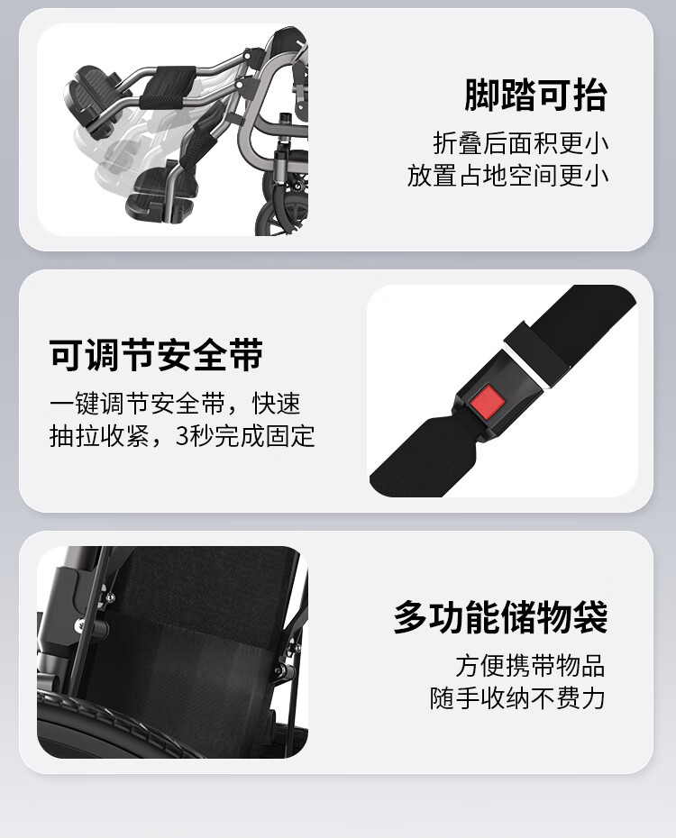 Dihu three-fold manual wheelchair for the elderly, lightweight travel trolley, foldable and portable for the elderly