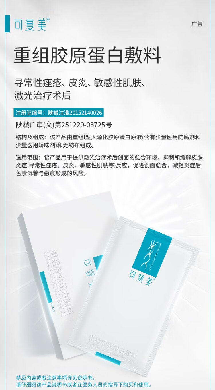 Kefumei Recombinant Collagen Dressing 4 boxes of 20 patches, facial wound healing before and after, sensitive skin, acne dermatitis