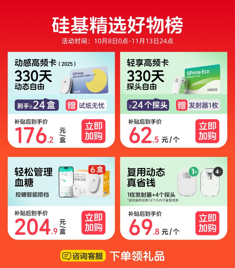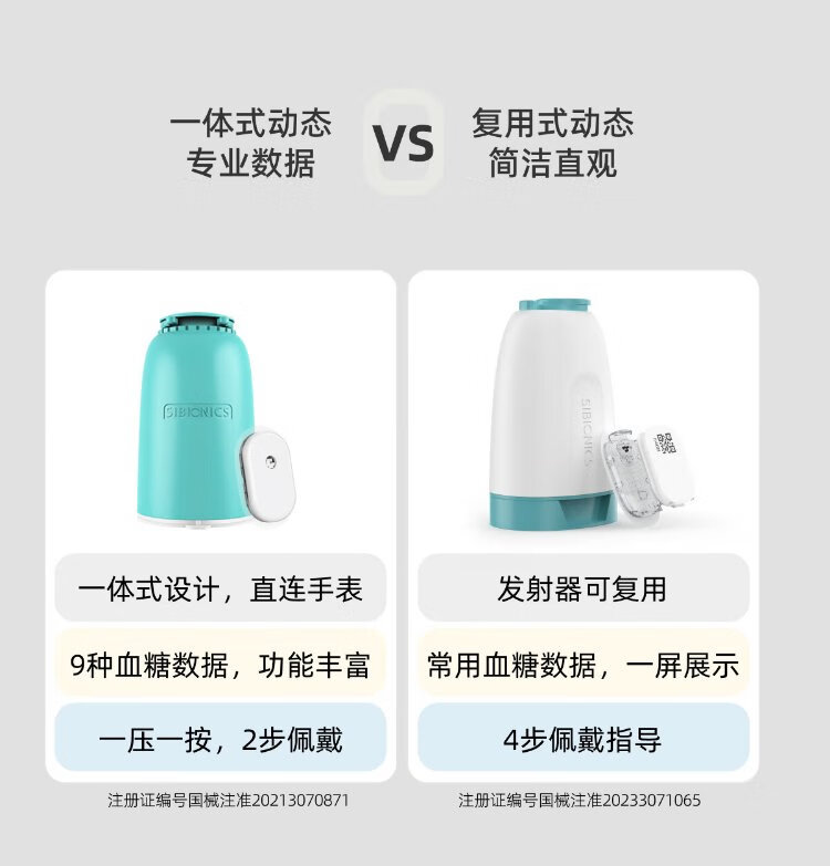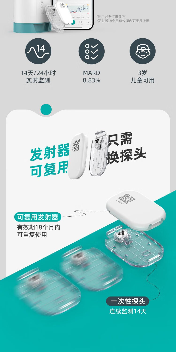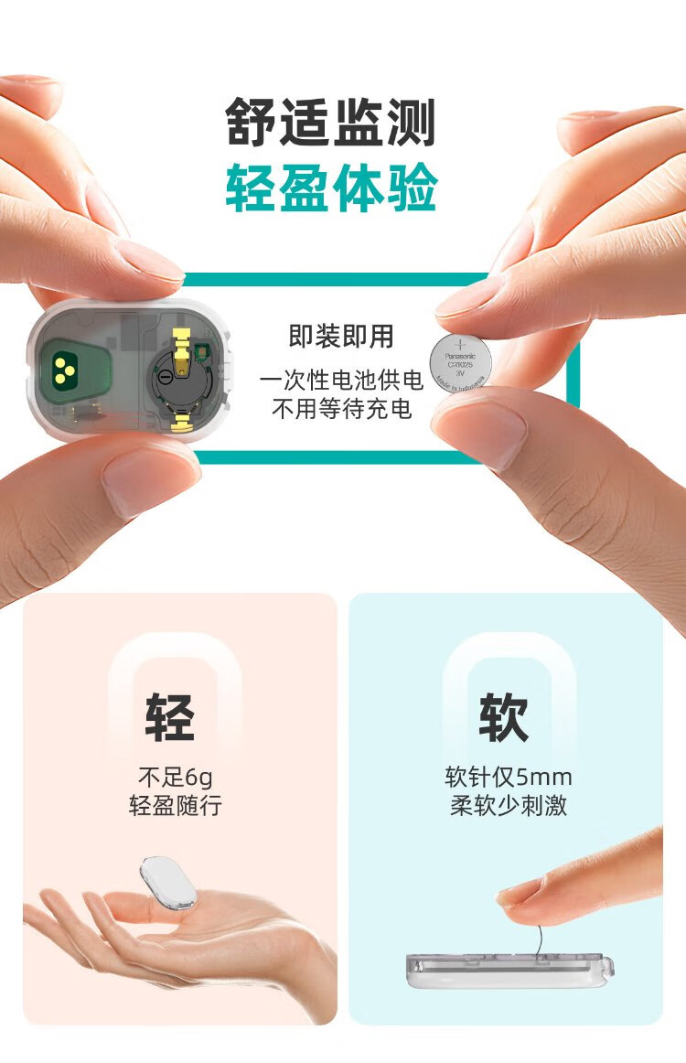 Silicone-based dynamic and lightweight split-type dynamic blood glucose meter needle-free monitor continuous glucose monitoring system 1+2 set