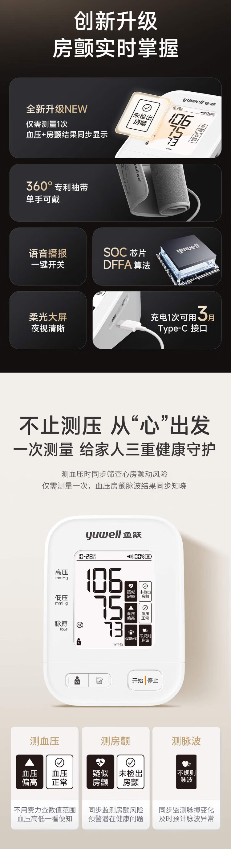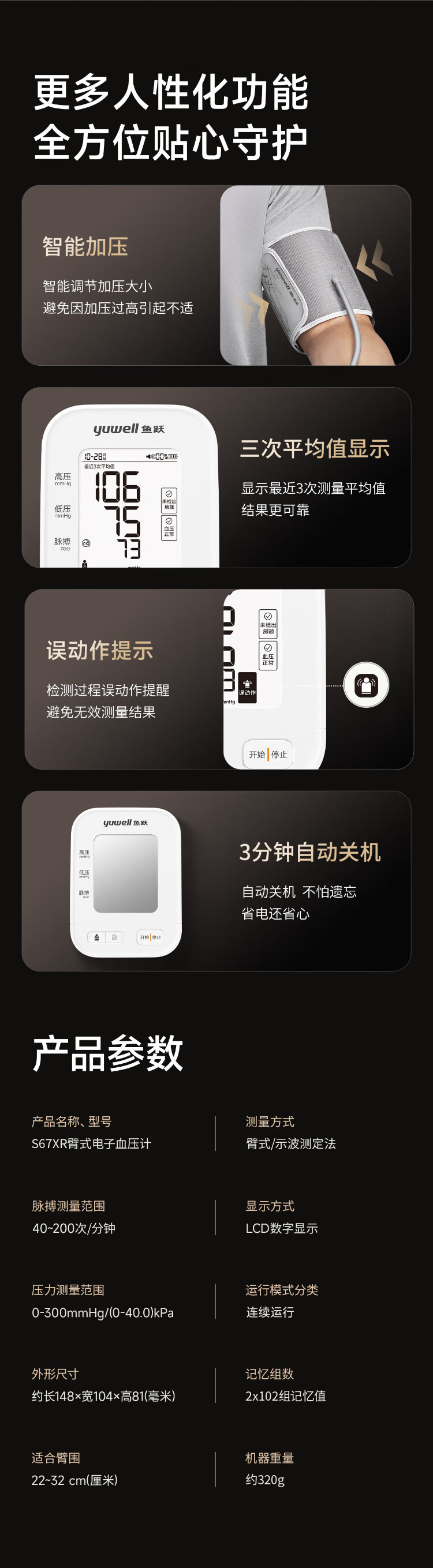 Yuwell atrial fibrillation best-selling electronic blood pressure monitor S67XR home blood pressure meter medical high-precision blood pressure measuring instrument for the elderly