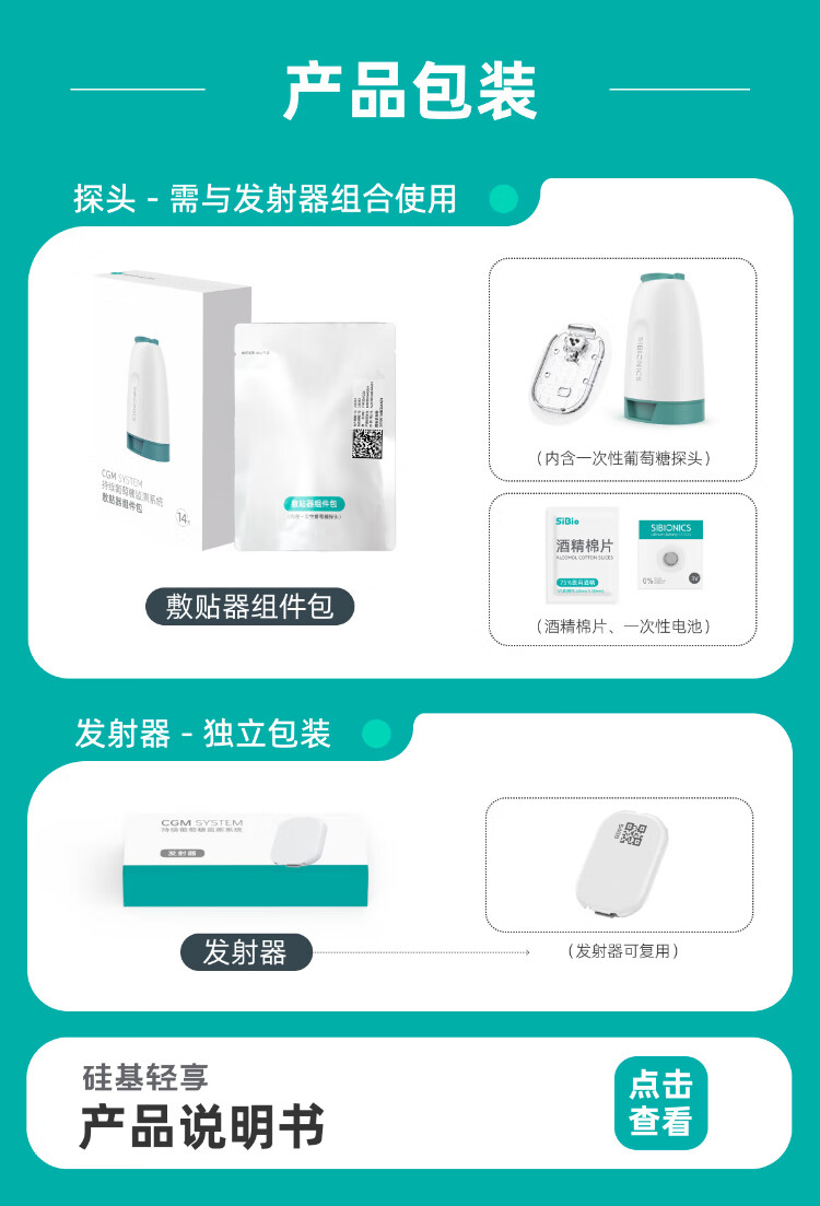 Silicone-based dynamic and lightweight split-type dynamic blood glucose meter needle-free monitor continuous glucose monitoring system 1+4 set