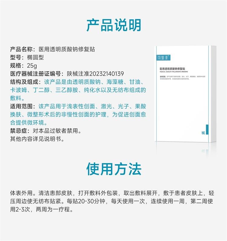 Kefumei Medical Sodium Hyaluronate Repair Patch Oval (25g*5 pieces/box*2 boxes)